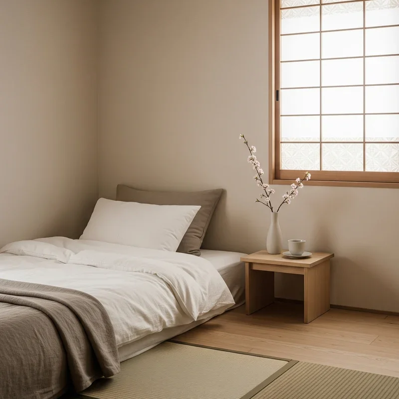 Embrace zen simplicity with Japanese-inspired design that uses neutral colors to create tranquil, uncluttered spaces. Wabi-sabi wisdom! Keep furniture low and simple: a platform bed, floor cushions, and minimal storage. Use natural materials like bamboo, rice paper, and light wood throughout. The color palette stays firmly in neutrals: white, natural wood, and black accents. Include one piece of nature like a bonsai or simple branch arrangement. Eliminate clutter ruthlessly, displaying only essential items. Natural light becomes crucial, filtered through sheer curtains or paper screens. Your Japanese-inspired bedroom becomes a meditation on simplicity, proving that less really can be more when executed thoughtfully.
