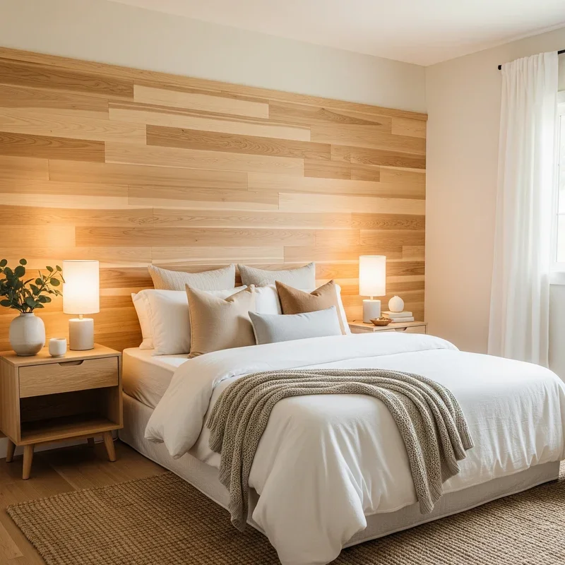 Bring the outdoors in with a stunning natural wood accent wall that adds organic warmth to your neutral bedroom palette. Wood is nature's neutral superstar! Whether you choose reclaimed barn wood, sleek bamboo panels, or classic shiplap, a wood wall instantly adds character and texture. The natural grain patterns create visual interest while maintaining the calm neutral atmosphere. Position your bed against this feature wall to make it the focal point, or use it to define a seating area. Light woods keep the space bright and airy, while darker woods add drama and coziness. Seal the wood with a matte finish to preserve its natural beauty without adding shine. Your wood accent wall becomes a piece of art that grounds the room and connects your indoor sanctuary with the natural world outside.