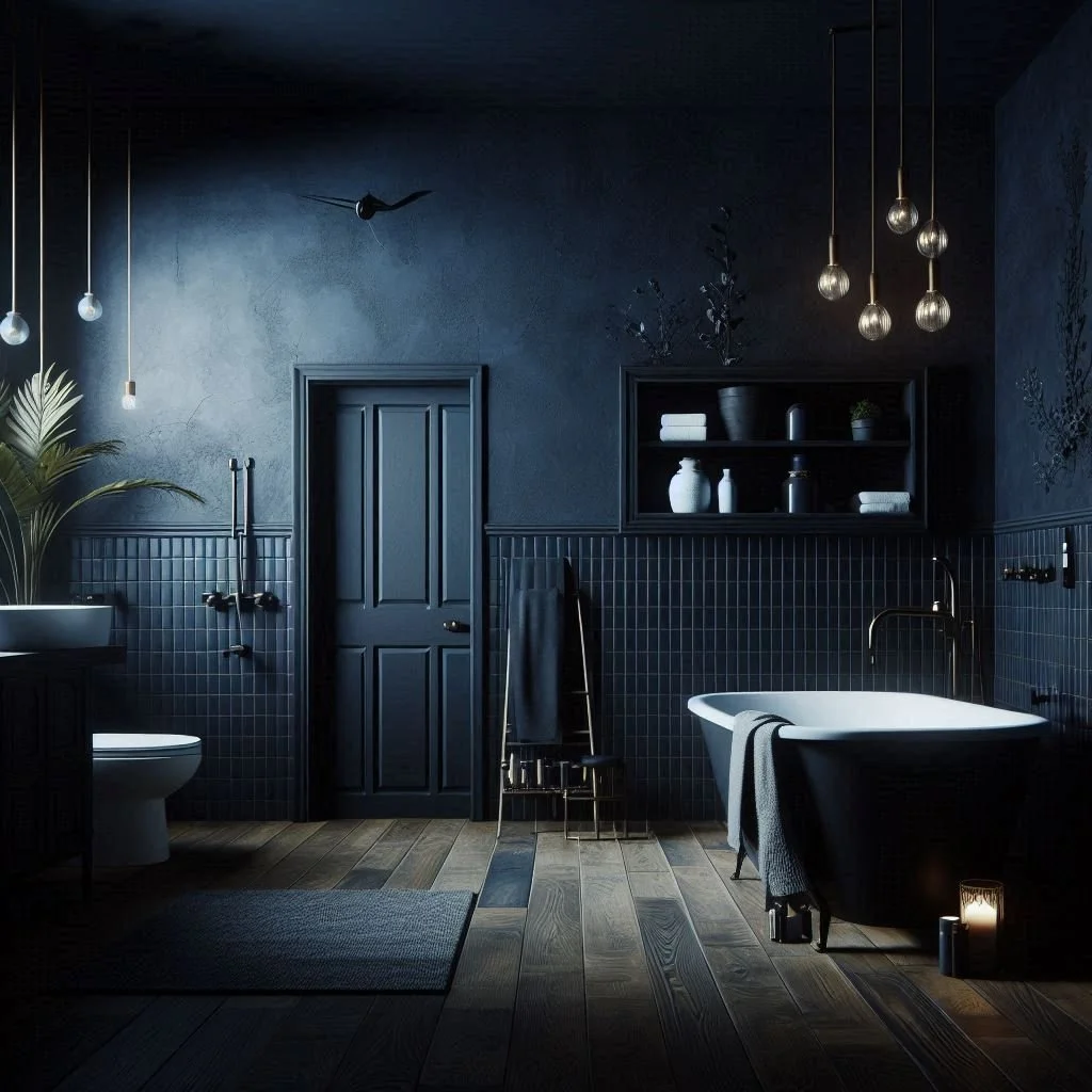 Deep blue is a great alternative to black, offering richness and depth without being too overpowering. Use it on walls or tiles to create a bold, yet inviting atmosphere. Pair deep blue with white accents for a crisp, clean contrast that enhances the room's brightness and balance. Alternatively, gold accents can add a touch of luxury and warmth, elevating the overall aesthetic. The combination of deep blue with either white or gold creates a visually stunning and sophisticated space. This approach allows you to enjoy the dramatic effect of a dark color while maintaining a vibrant and elegant ambiance in your bathroom or kitchen.