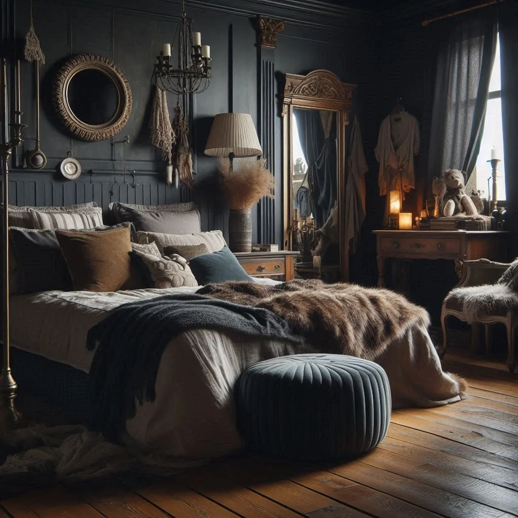 Incorporating vintage elements into a dark cozy bedroom can significantly enhance its character and charm, creating a space that feels both unique and personal. Start by hunting for antique furniture pieces such as a vintage dresser, vanity, or bedside table. These items not only serve practical purposes but also bring a story and timelessness to your decor. Vintage lighting fixtures, such as chandeliers or wall sconces, can further add to the nostalgic feel, casting warm, ambient light that complements the dark tones of the room.