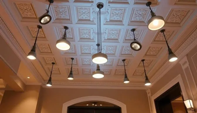 Ambient lighting acts as your entry's foundation. Think of it as sunlight on a cloudy day – evenly distributed and gentle. Recessed ceiling fixtures or flush-mounted options provide this base layer without overwhelming the space.