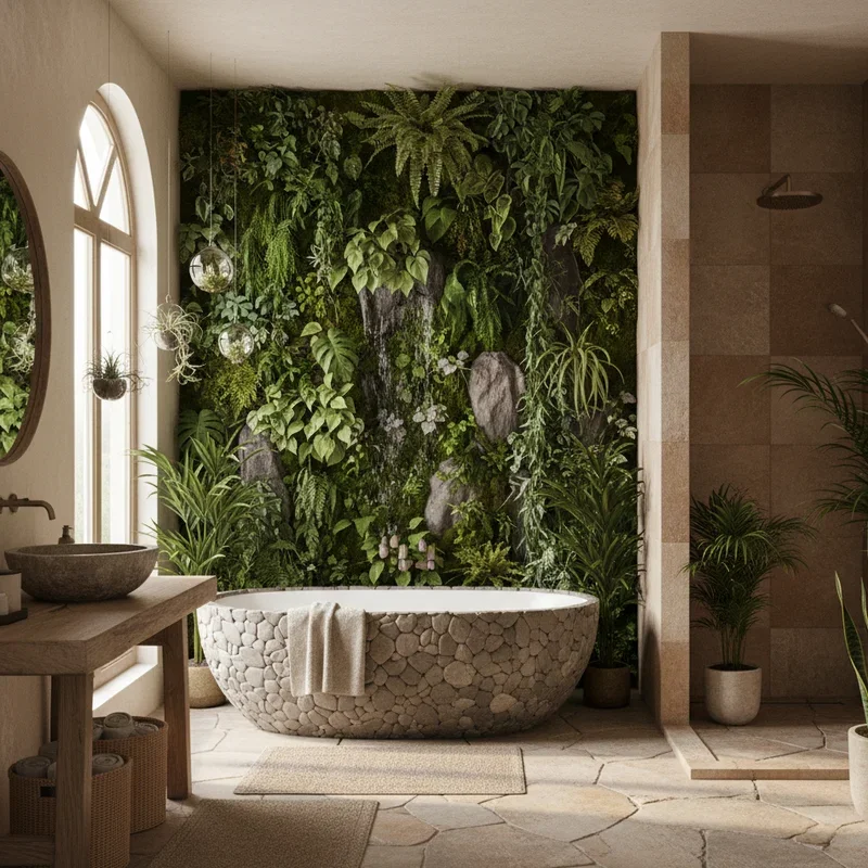 Nothing brings life to an earthy bathroom quite like actual living plants thriving in your space. Humidity-loving varieties like ferns, pothos, and air plants flourish in bathroom environments while purifying air and adding vibrant green accents. Hang macramé planters at varying heights to create a jungle-like canopy effect without sacrificing floor space. A small fiddle leaf fig or snake plant in a terracotta pot becomes a living sculpture beside your bathtub. Consider a living wall installation if you're feeling ambitious, turning an entire surface into a vertical garden. Even low-light tolerant plants like ZZ plants or peace lilies work in windowless bathrooms under proper lighting. Group plants of different heights and textures for visual interest, treating them as you would any design element. The presence of living things transforms your bathroom from a purely functional space into a thriving ecosystem that evolves and grows with you.