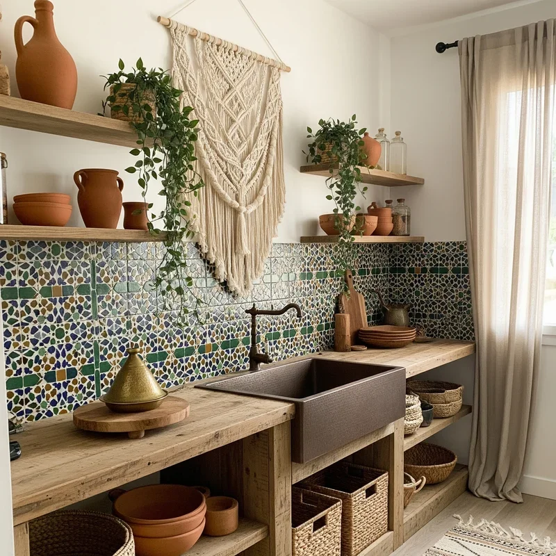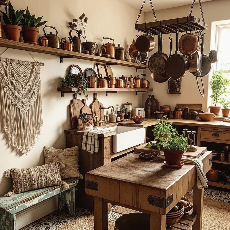What if your kitchen could feel like a warm hug from Mother Earth herself? That's the magic of earthy boho design! Gone are the sterile, all-white kitchens that feel more like operating rooms than the heart of your home. Today's boho kitchens are where free spirits meet functionality, where organic textures dance with practical needs, and where cooking becomes a grounding ritual rather than a chore. Picture this: sunlight streaming through macramé curtains, herbs growing in terracotta pots on open shelves, and the warm glow of Edison bulbs illuminating your handcrafted wooden countertops. It's like bringing the best parts of a Moroccan market, a California beach house, and your grandmother's cozy cottage into one harmonious space. The earthy boho kitchen isn't just about aesthetics; it's a lifestyle choice that celebrates sustainability, mindfulness, and connection to nature. Whether you're a full-blown hippie at heart or just someone craving more warmth in your culinary space, these ideas will help you create a kitchen that feeds both body and soul. Ready to trade that cookie-cutter kitchen for something with actual soul? Let's dig into these earth-loving ideas!