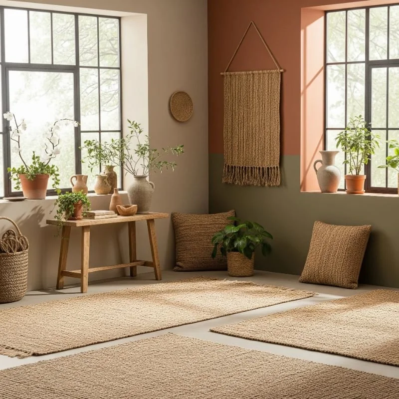 Ground your earthy room with natural fiber rugs that bring texture and warmth while maintaining eco-friendly credentials. Jute, sisal, wool, and cotton rugs offer different textures and durability levels for various room needs. Layer smaller rugs over larger ones for added depth and to define separate areas within open spaces. The neutral tones of most natural fiber rugs provide perfect foundations for building your earth-toned color scheme. These materials feel amazing underfoot, adding sensory pleasure to visual appeal. Choose flat-weave options for high-traffic areas or plush wool for bedroom comfort zones. The organic irregularities in natural fiber rugs add character that machine-made synthetics lack. Proper care keeps these investments looking fresh while developing beautiful patina over time. These floor coverings literally ground your space in natural materials from the bottom up.