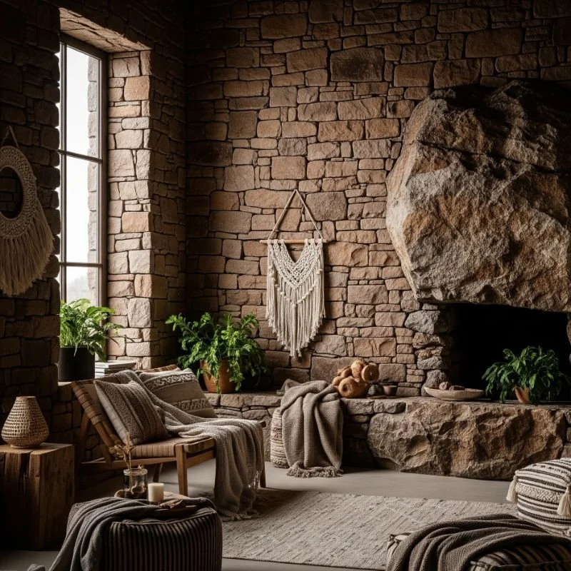 Introduce the timeless elegance of stone elements to add weight and permanence to your earthy aesthetic. Create a statement wall with stacked stone veneer or incorporate river rocks into bathroom designs for spa-like serenity. Even small touches like marble coasters or granite bookends bring that geological beauty indoors. The cool surface of stone provides beautiful contrast to warmer wood and textile elements. Consider a stone fireplace surround or kitchen backsplash for major impact, or start small with decorative bowls carved from natural stone. The varied textures and colors found in different stones offer endless design possibilities. Mix rough and polished finishes for dynamic visual interest that mimics nature's own variety. These elements connect your indoor space to the ancient earth, creating rooms that feel both grounded and sophisticated.