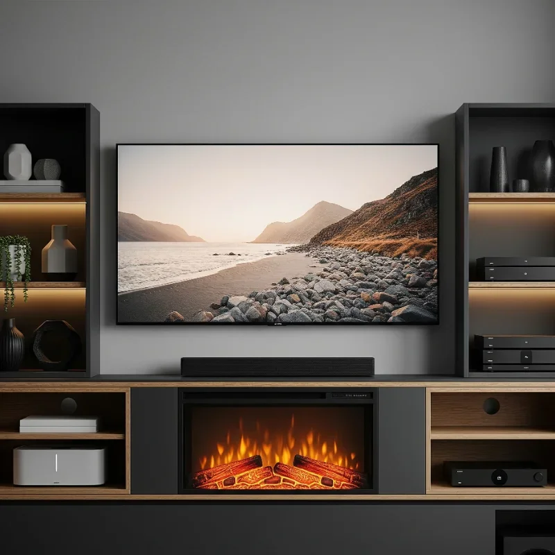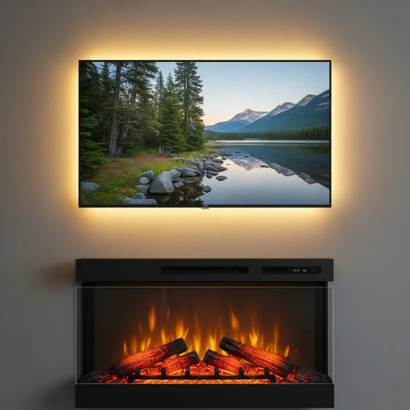 Take your setup to the next level with strategic LED backlighting that creates ambiance and reduces eye strain. These programmable light strips install behind your TV and around your fireplace surround. Color-changing options let you match lighting to content, seasons, or moods. Warm amber tones complement fireplace flames while cool blues enhance movie watching. The indirect lighting reduces contrast between bright screens and dark walls, improving viewing comfort. Smart LED systems integrate with home automation for voice or app control. The subtle glow creates depth and dimension that flat walls lack. Many systems include music synchronization for party-perfect light shows. Installation requires minimal technical skill, making this an achievable upgrade for most homeowners. The energy-efficient LEDs cost pennies to operate while dramatically enhancing your room's atmosphere. Your space transforms from ordinary to extraordinary with the flip of a switch.