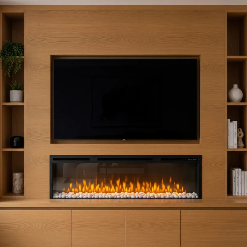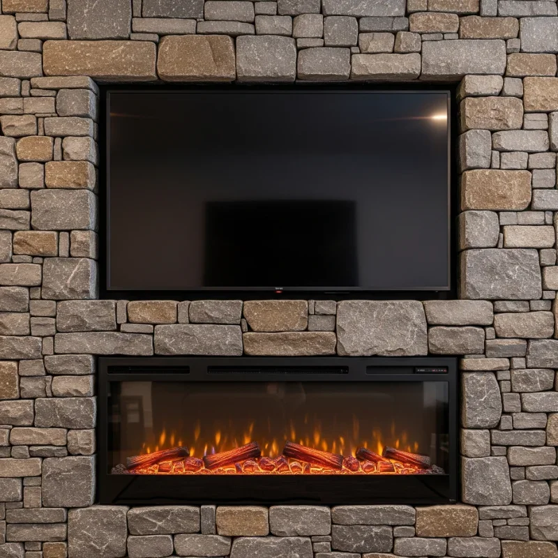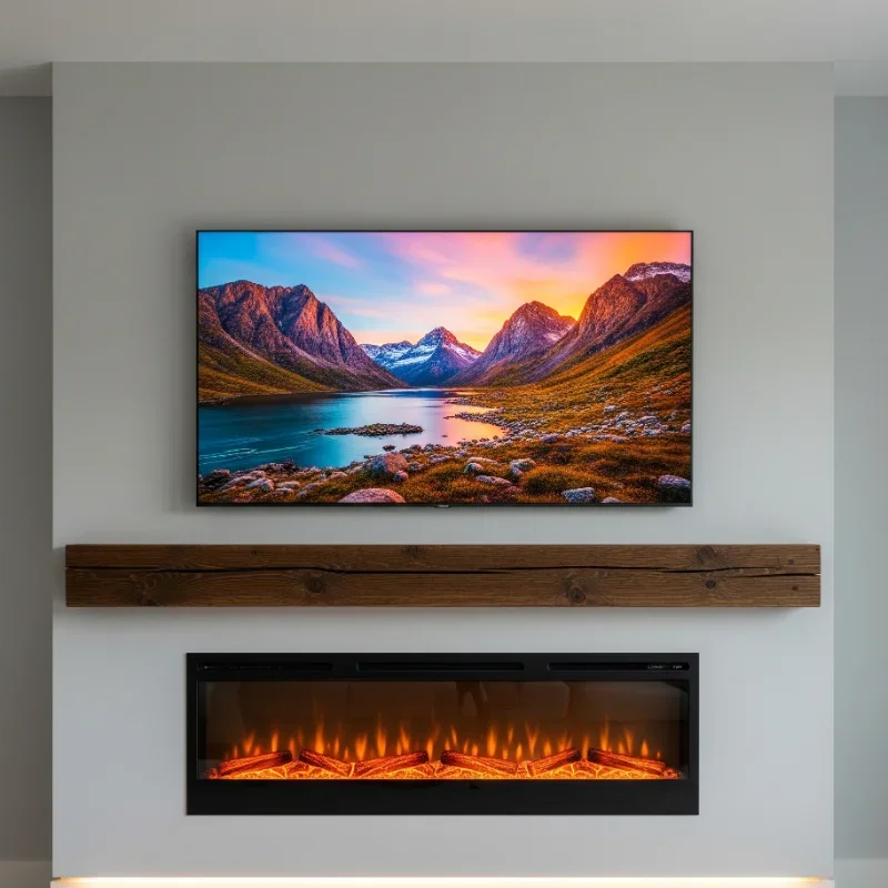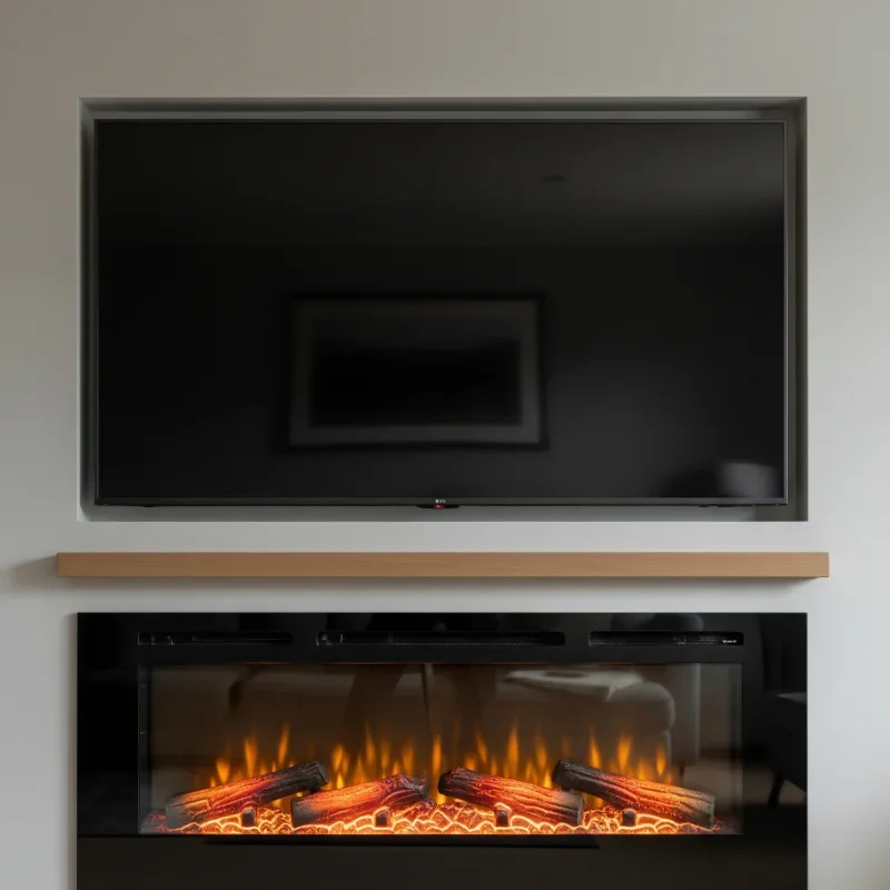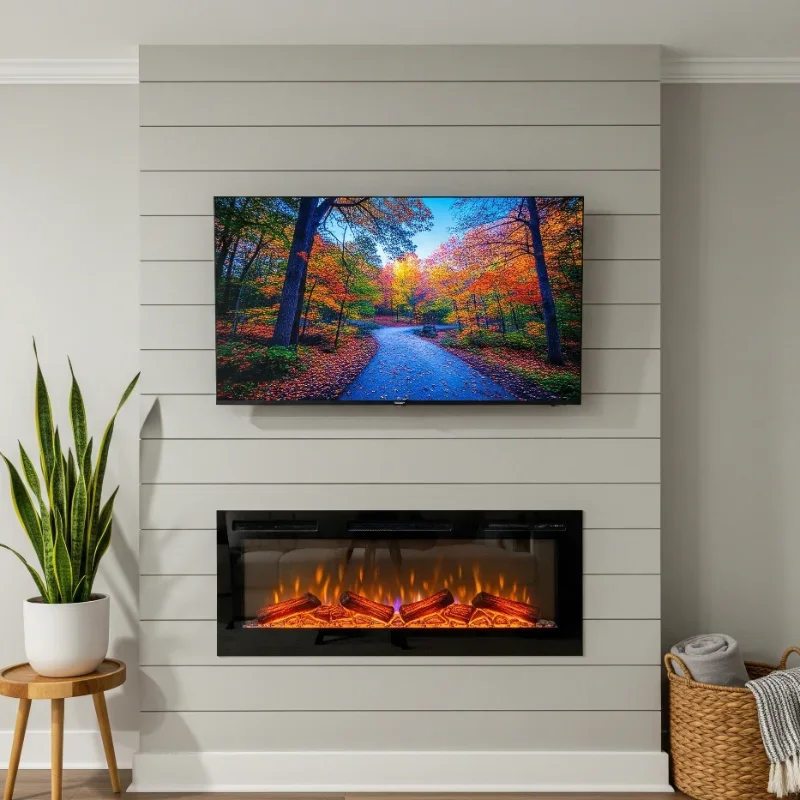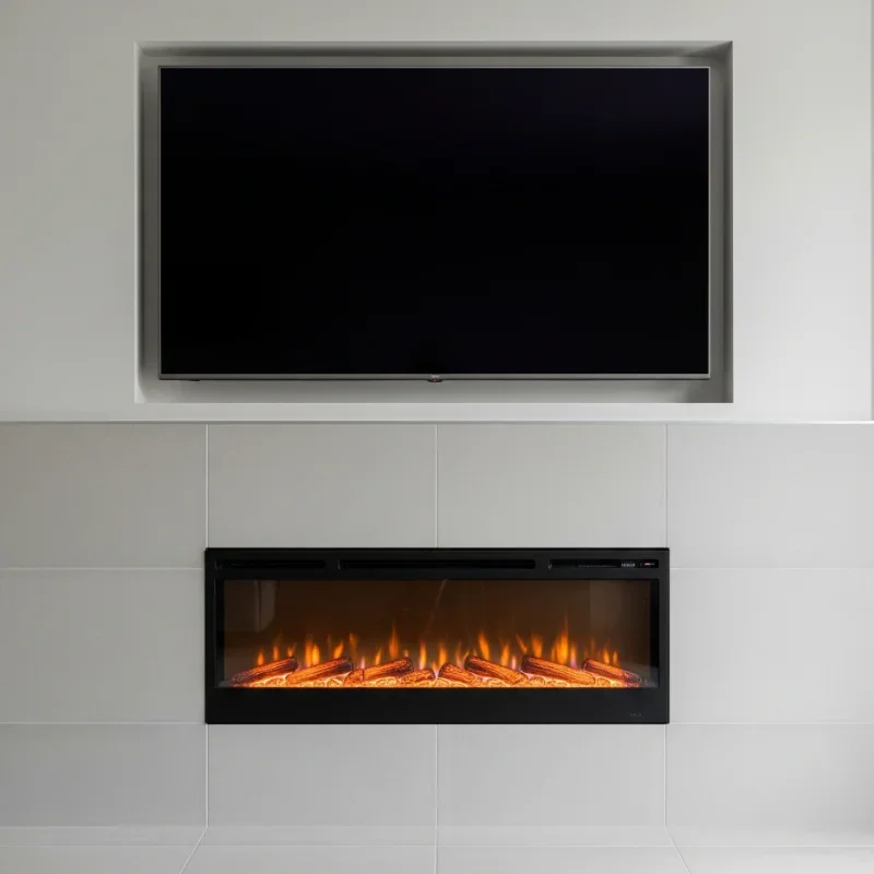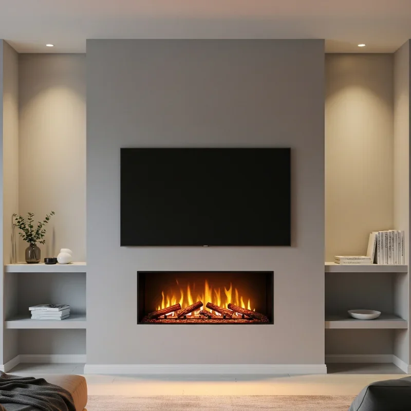 Recessed installations create that sought-after built-in look without major renovations. These fireplaces sit flush with your wall, appearing to emerge from within rather than protruding outward. The result? A clean, architectural element that looks like it's always belonged there. Your TV mounts directly above, maintaining the same sleek profile. This setup works wonderfully in modern homes where minimalism reigns supreme. The recessed design saves precious floor space, making it ideal for narrow rooms or high-traffic areas. Installation requires cutting into drywall but rewards you with a premium appearance. Many recessed models feature glass fronts that sit perfectly flat against the wall. The seamless integration makes your fireplace feel like an organic part of your home's architecture. Choose models with adjustable flame brightness to prevent glare on your TV screen during movie nights.