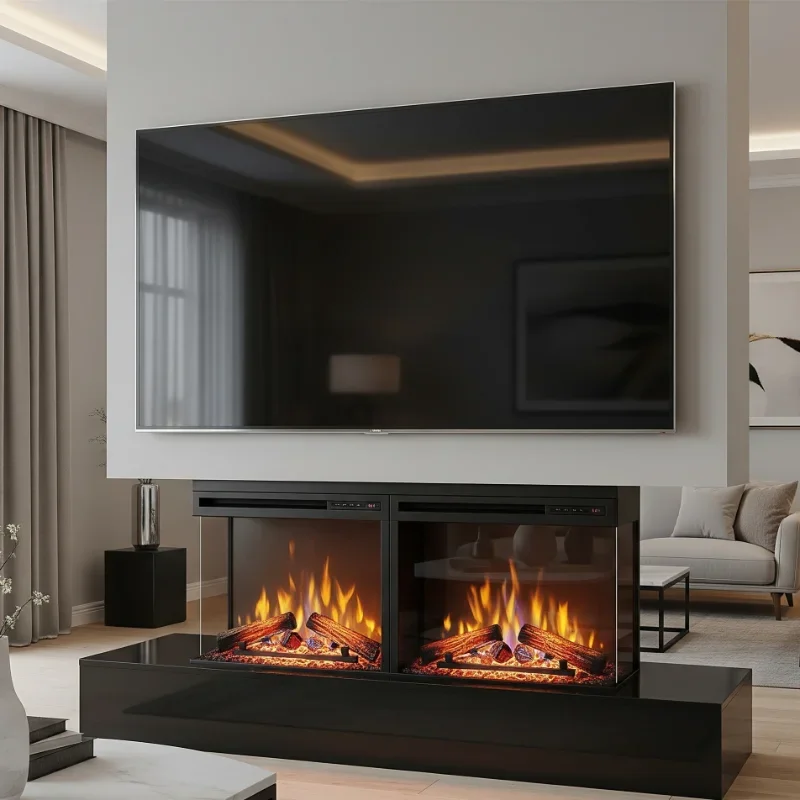 Why limit your fireplace enjoyment to one room? Two-sided electric fireplaces serve adjacent spaces simultaneously, creating architectural interest and practical heating solutions. These innovative units work perfectly between living and dining areas or master bedrooms and bathrooms. Mount TVs on both sides for ultimate flexibility, or keep one side dedicated to pure ambiance. The see-through design maintains visual connection between spaces while providing subtle division. Installation requires careful planning to ensure proper support for dual TV mounting. Many models feature independent controls for each side, allowing different flame settings per room. This setup becomes a stunning centerpiece that guests admire from every angle. The transparency prevents spaces from feeling closed off while maintaining distinct room identities. Double-sided designs offer twice the enjoyment without doubling your energy costs. Your home gains a luxury feature typically reserved for high-end hotels.