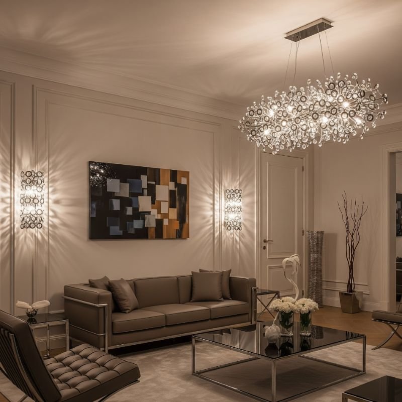 Incorporate crystal and glass elements that catch and reflect light, adding sparkle without venturing into gaudy territory. Choose quality pieces: perhaps a single stunning chandelier, carefully placed crystal objects, or glass furniture that seems to float. The transparency prevents visual weight while adding sophisticated shine that elevates entire rooms. Modern crystal designs offer clean lines for contemporary elegance, while traditional cuts suit classic interiors. Mix glass textures: smooth surfaces with etched details, clear with colored accents for depth. The key lies in restraint; too much crystal overwhelms while strategic placement creates magical light play. Position pieces where natural or artificial light enhances their beauty throughout the day. These luminous additions bring movement and life to static spaces through ever-changing reflections.
