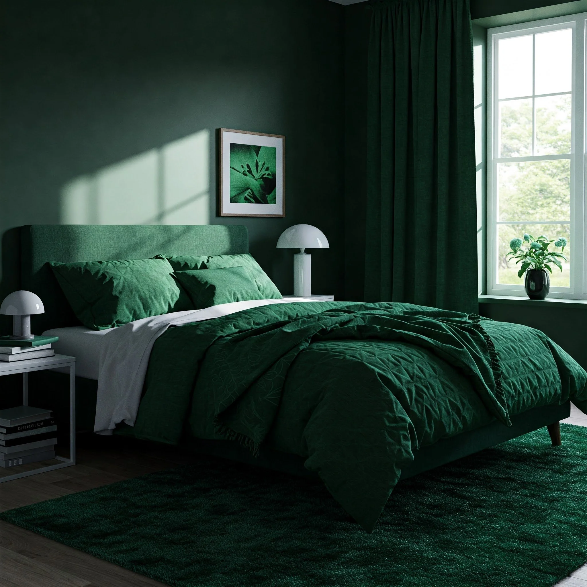 To fully appreciate the depth of emerald or dark green, explore different fabric textures that catch light in unique ways. Velvet, for instance, has a knack for amplifying rich tones—it’s like capturing sunlight in a plush forest, each fiber glinting softly. Imagine a velvet emerald bedspread or accent pillow that entices you to run your fingers across it. Linen, with its more relaxed weave, lends a breezy, organic feel, toning down the drama while maintaining that sophisticated edge. For those who crave extra coziness, chunky knitted throws or faux-fur blankets in complementary shades can make a space feel warm and welcoming. Don’t feel compelled to stop at bed linens, either. Window treatments, ottomans, or even a cushioned reading nook in a dark green hue can layer textures, creating a bedroom that is both visually captivating and undeniably comfortable.