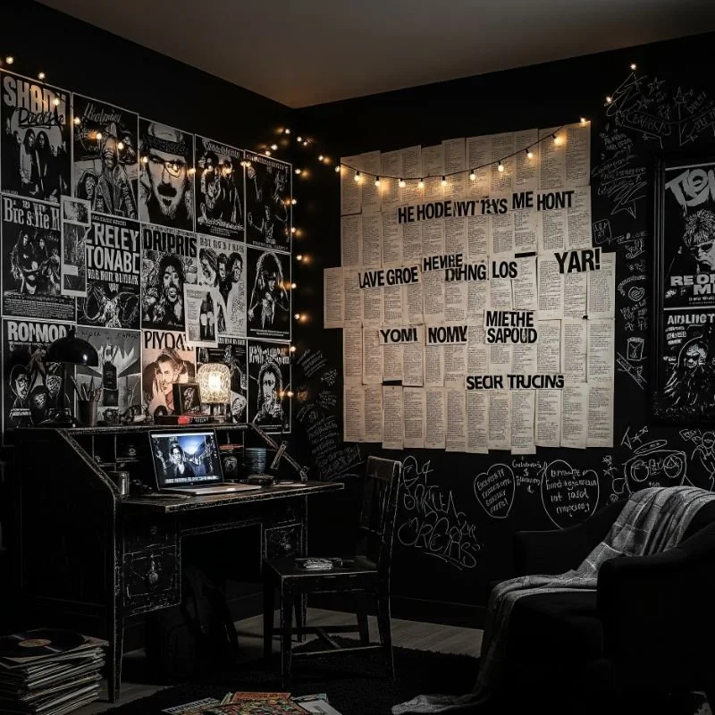 Transform your favorite emo lyrics into visual art that speaks when you can't find the words. Hand-letter meaningful quotes using various techniques: paint markers on canvas, vinyl decals on walls, or embroidered pieces for texture. Choose lyrics that resonate with your current emotional state or timeless lines that always hit different. Mix fonts and sizes to create visual interest, perhaps using gothic lettering for dramatic lines and handwritten script for vulnerable moments. This personal touch makes your room uniquely yours while paying homage to the poets of the scene. Include lyrics from deep cuts that only true fans recognize, creating an insider's club within your walls. The DIY aspect adds authenticity that store-bought art can't replicate. These pieces become emotional anchors during tough times and celebrations of understanding during good ones.