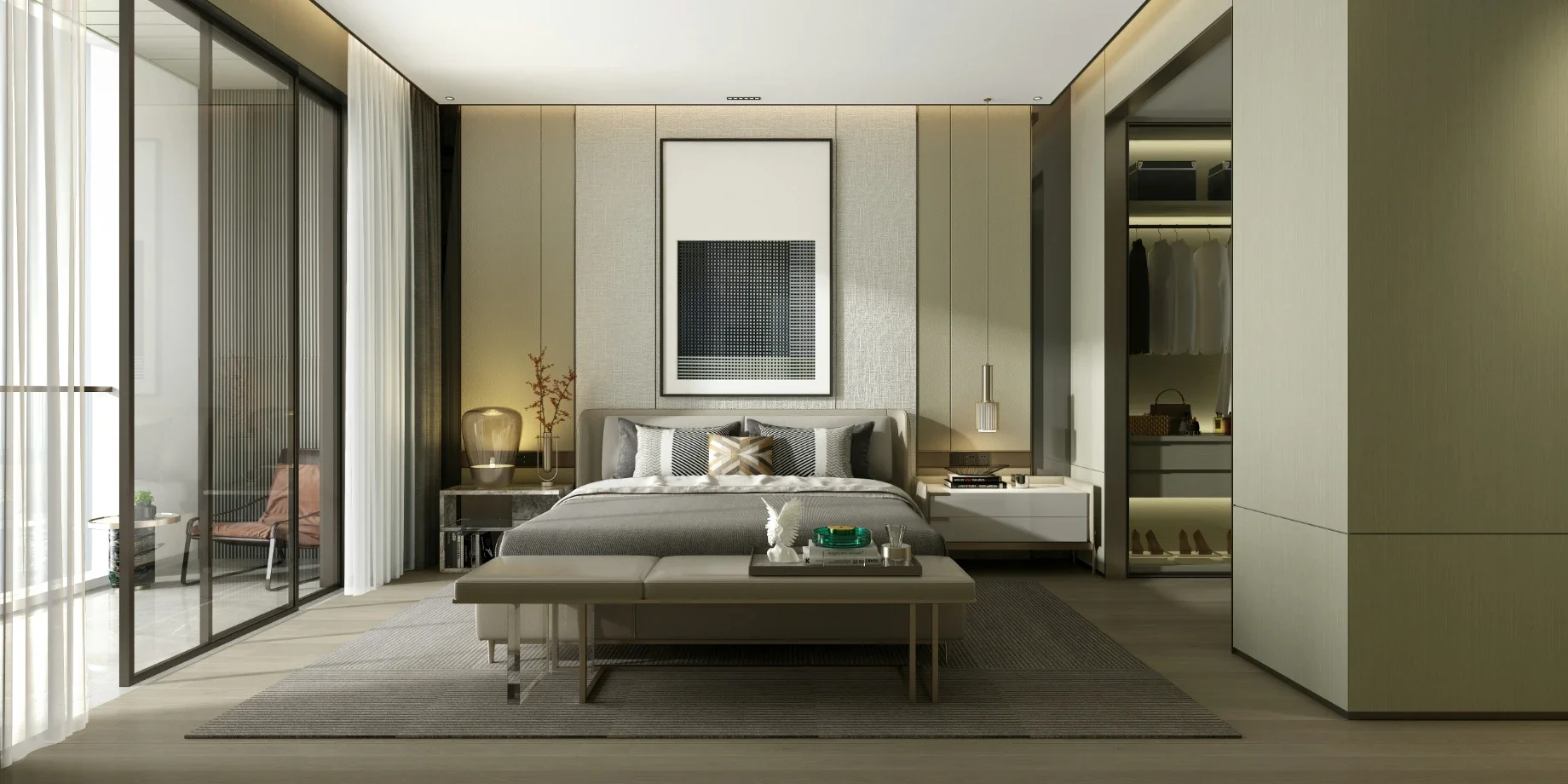 Clutter disrupts the sense of calm that a bedroom should provide. Thoughtful storage solutions keep the space organized and visually appealing. Built-in wardrobes, under-bed drawers, and multi-functional furniture maximize available space without compromising design.