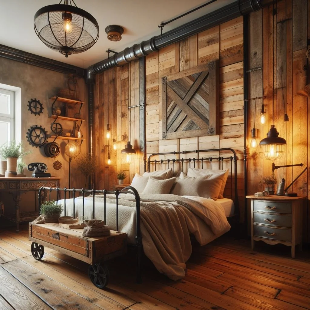 Create a focal point in your bedroom with a weathered wood accent wall. Whether crafted from reclaimed barn wood or faux wood paneling, this rustic feature infuses your space with texture and warmth, imparting a cozy and inviting atmosphere. The natural patina and rugged charm of weathered wood evoke a sense of rustic elegance, creating a retreat reminiscent of a cozy cabin in the woods or a charming farmhouse getaway. As the soft, earthy tones and tactile surface of the wood envelop your room, you're transported to a tranquil sanctuary where you can unwind and rejuvenate amidst the comforting embrace of nature-inspired design.