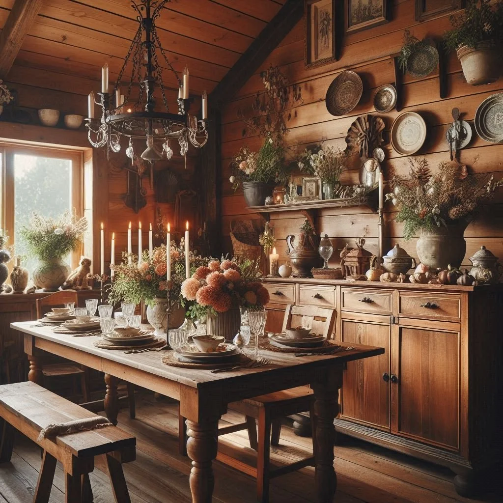Incorporate vintage tableware into your dining room for a touch of nostalgia and charm. Look for antique plates, silverware, and glassware at flea markets or thrift stores to add unique pieces to your collection. These items bring a sense of history and character to your dining space. Display them on open shelving or in a glass-front cabinet to showcase their beauty and enhance the rustic appeal. The mix of old and new elements creates a warm, inviting atmosphere, making each meal feel special. Whether used for everyday dining or special occasions, vintage tableware adds a distinctive, timeless elegance to your farmhouse decor.
