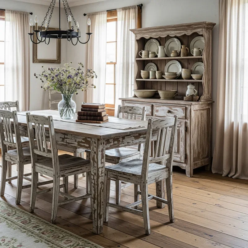 In farmhouse style, perfection is overrated. Distressed furniture celebrates the beauty of wear and tear, telling stories through every scratch and ding. That beat-up dresser from the flea market? It's not damaged; it's full of character! The technique involves strategically sanding edges and surfaces to reveal layers underneath, creating an authentically aged appearance. You can distress new pieces or embrace naturally weathered finds. Mix distressed pieces with smoother surfaces for balance. A chippy paint cabinet paired with a sleek sofa creates dynamic contrast. The philosophy extends beyond furniture to picture frames, mirrors, and decorative objects. This approach gives you permission to relax about keeping everything pristine. Kids' fingerprints and pet scratches just add to the charm. Finally, a design style that gets better with age!