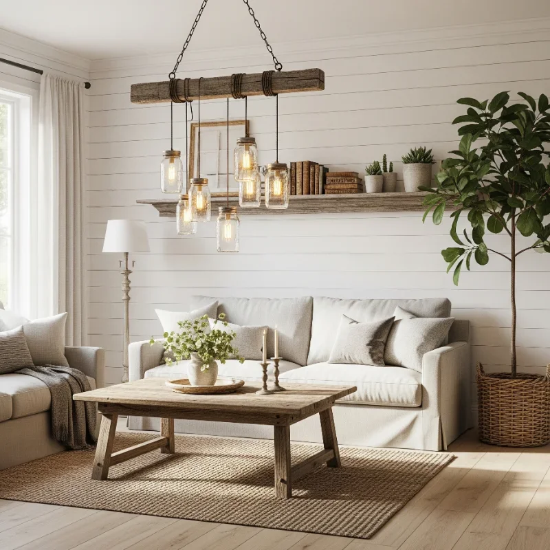 Who knew humble canning jars could become stunning light fixtures? Mason jar lighting brings whimsy and warmth to any farmhouse space. Whether clustered as a chandelier or lined up as vanity lights, these fixtures cast a soft, romantic glow. The glass creates beautiful light patterns while the metal lids add industrial touches. You can fill jars with fairy lights for subtle ambiance or wire them with Edison bulbs for brighter illumination. DIY enthusiasts love customizing colors and sizes to match their decor. Hang them at varying heights over a kitchen island for visual interest. The transparency keeps spaces feeling open while adding personality. It's amazing how something designed for preserving food now preserves the farmhouse aesthetic. Your guests will be asking where you found such creative lighting solutions!