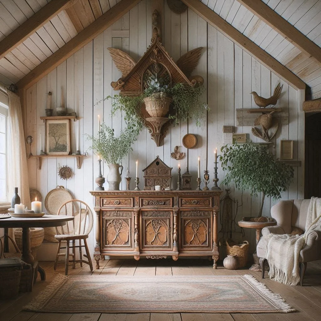 Vintage furniture is the heart of farmhouse style, adding a sense of history and charm to your space. Distressed dining tables, antique dressers, and weathered chairs evoke a sense of nostalgia and warmth, making your home feel truly lived-in. Look for pieces with character—chipped paint, worn edges, or faded finishes—elements that tell a story and give the space a unique, personal touch. These pieces not only serve as functional furniture but also act as conversation starters, creating an inviting and timeless atmosphere. Pair vintage items with modern touches for an eclectic yet cohesive look that blends the old and the new, embodying the heart of farmhouse design. Vintage furniture truly elevates the farmhouse aesthetic, creating a warm and welcoming environment.