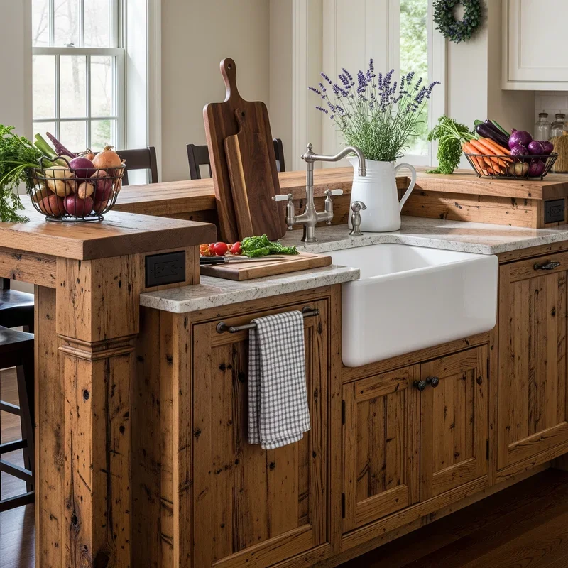 Nothing screams farmhouse quite like an island crafted from reclaimed barn wood that tells stories of the past. Each plank brings unique weathering, nail holes, and grain patterns that mass-produced furniture simply can't replicate. Imagine running your hands across wood that once sheltered livestock or stored harvests, now serving as your family's gathering place. You can source reclaimed lumber from old barns, factories, or specialized suppliers who rescue architectural salvage. The natural patina and imperfections become features, not flaws, adding authenticity that makes guests ask where you found such a treasure. These islands pair beautifully with modern appliances, creating that perfect contrast between old and new. Consider adding industrial wheels for mobility or keeping it stationary with chunky turned legs that anchor the piece as your kitchen's centerpiece.