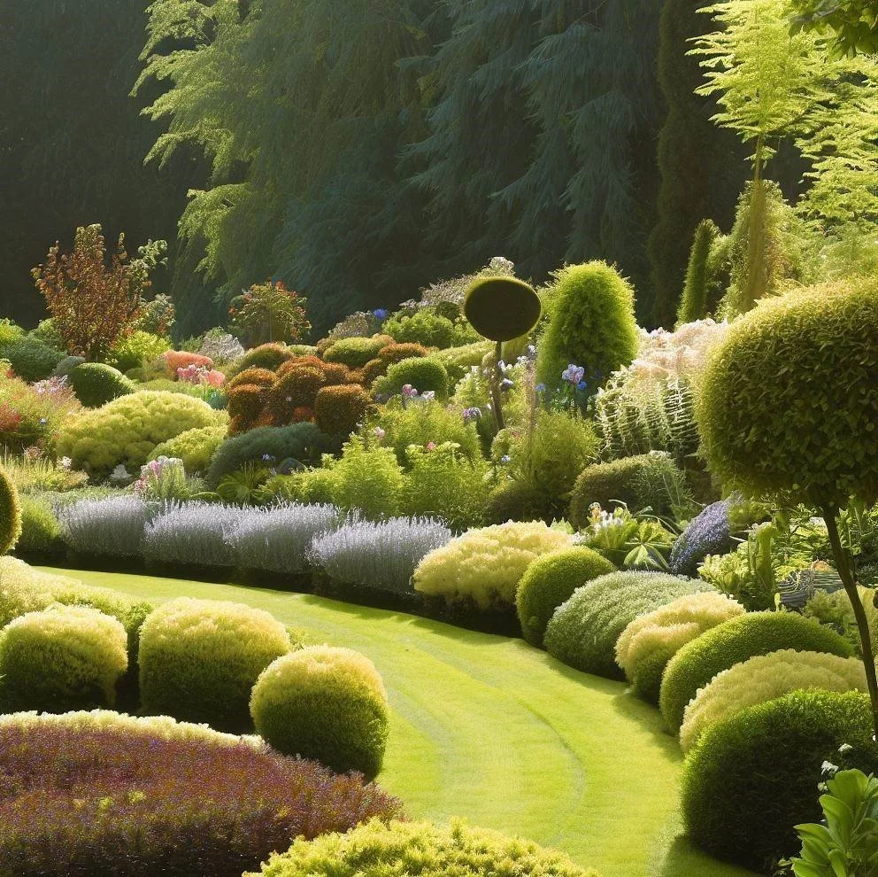 A garden featuring a formal design with neatly trimmed hedges and symmetrical plantings, representing the concept of defining your garden style and exploring different design aesthetics.