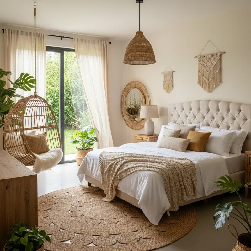 Incorporate authentic rattan headboards, wicker nightstands, or a peacock chair to instantly channel island living vibes. These natural materials bring texture and warmth while maintaining the light, airy feel essential to tropical design. Choose pieces with interesting weave patterns that create shadows and visual interest against plain walls. Mix rattan with other materials like glass-topped wicker tables or upholstered rattan benches to prevent the look from becoming too uniform. Consider a rattan room divider to create a dressing area or reading nook within larger bedrooms. The natural honey tones of rattan complement both bright tropical colors and neutral palettes equally well. Layer different wicker textures through storage baskets, lampshades, and decorative accents for cohesive design. These pieces age beautifully, developing character over time that enhances the lived-in, relaxed vacation feel you're trying to achieve in your tropical bedroom retreat.