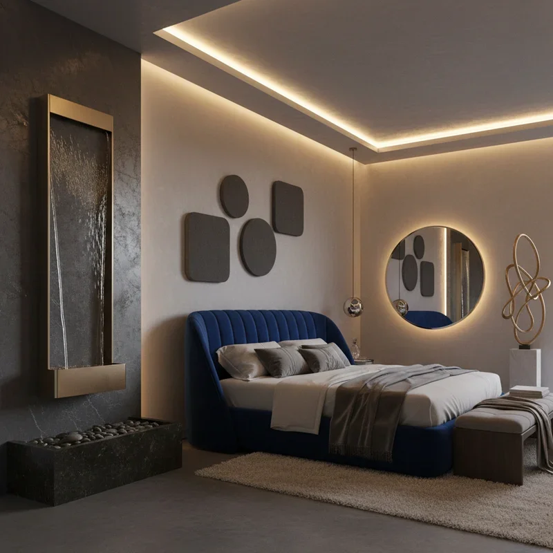 Introduce the soothing sounds of water through small fountains, wall-mounted water features, or sound machines with ocean recordings. Position tabletop fountains on dressers or nightstands for gentle water sounds that promote relaxation. Install wall fountains as functional art pieces that add movement and sound to your tropical paradise. Use white noise machines with tropical sound options: ocean waves, rain on leaves, or tropical birds for authentic ambiance. The sound of moving water masks outside noise while creating resort-like atmosphere that enhances sleep quality. Choose fountains with LED lights for nighttime ambiance or models that double as essential oil diffusers. These multi-sensory elements engage more than just visual design, creating immersive tropical experience that truly transports you mentally to vacation mode.