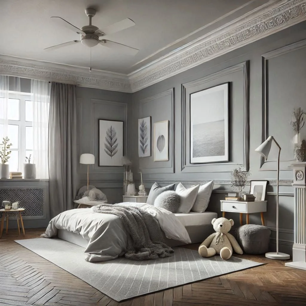 Create a calming and inviting space by painting your walls pale gray and furnishing with crisp white pieces, establishing a soothing and neutral palette. This combination enhances natural light, making rooms feel more spacious and tranquil. To add personality and a touch of fun, incorporate playful accents such as gray and white striped curtains, which introduce visual interest and texture without overwhelming the space. Additionally, include animal-themed decor items like whimsical cushions, artwork, or decorative sculptures to bring charm and liveliness to the room. These thoughtful additions balance the serene color scheme with elements that spark joy and engagement. Whether decorating a living room, bedroom, or nursery, this design approach fosters a harmonious and comfortable environment that is both elegant and delightfully playful, ensuring your space feels both sophisticated and warmly welcoming.