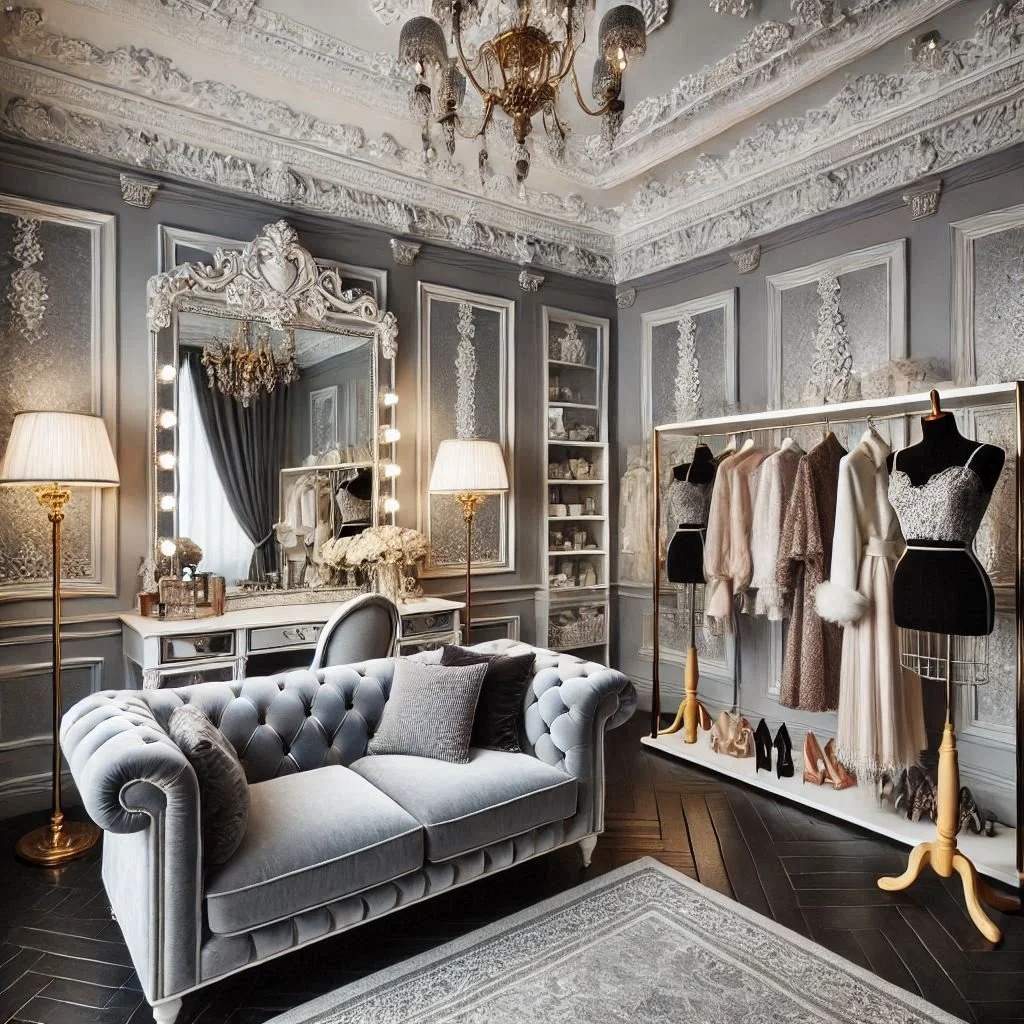 Create a glamorous and sophisticated space by using soft gray walls paired with crisp white furniture and mirrored accents. The soft gray walls provide a subtle, elegant backdrop that enhances natural light and adds depth to the room. White furniture complements this palette by offering a clean and timeless look, ensuring the space remains bright and airy. Incorporate mirrored accents such as decorative mirrors, mirrored coffee tables, or reflective decor items to amplify the sense of luxury and add a touch of sparkle. To further elevate the design, add a plush gray rug, which introduces texture and comfort while maintaining the cohesive color scheme. This combination not only creates a stylish and inviting environment but also exudes an air of opulence and refinement.
