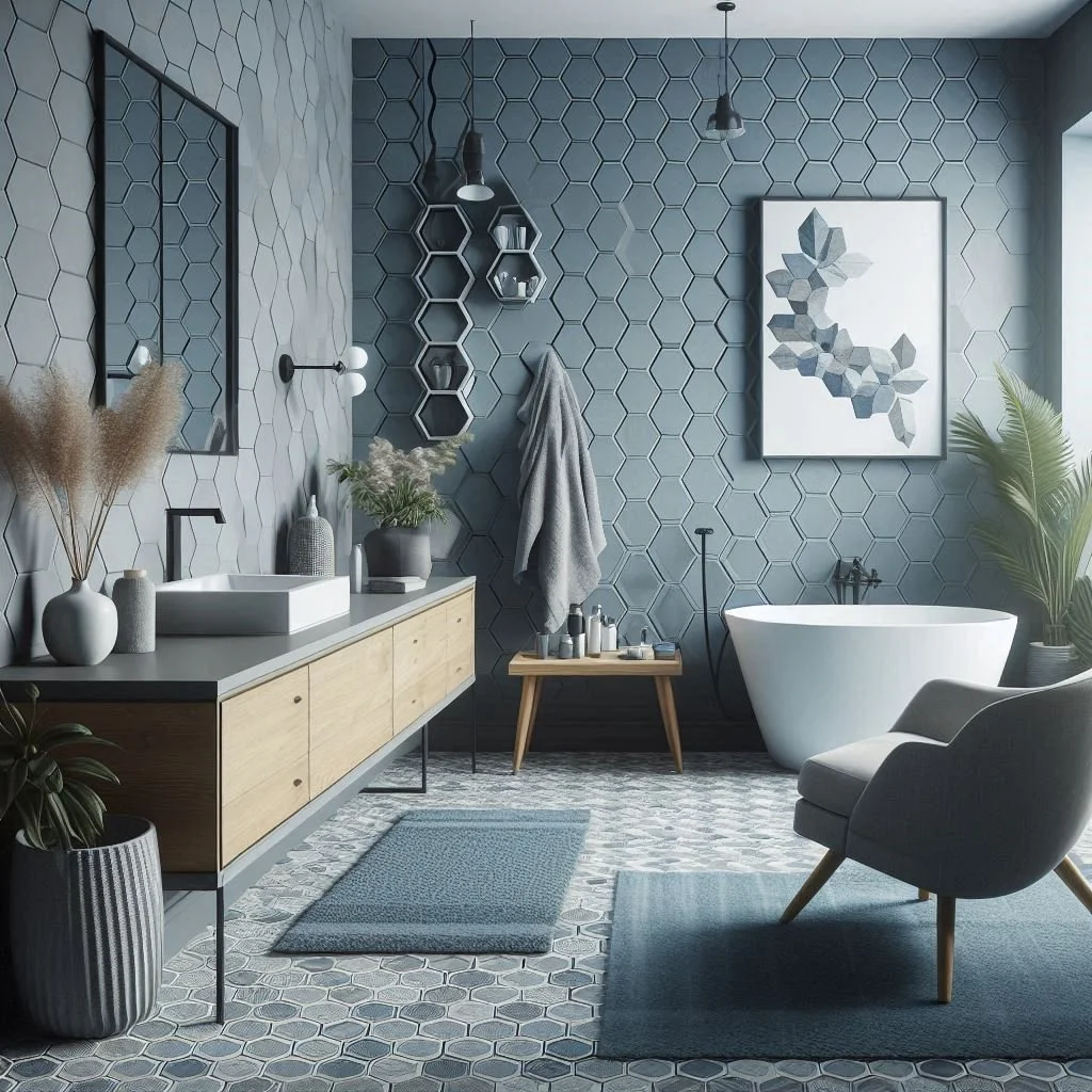 10. Blue and Grey Hexagon Tiles
