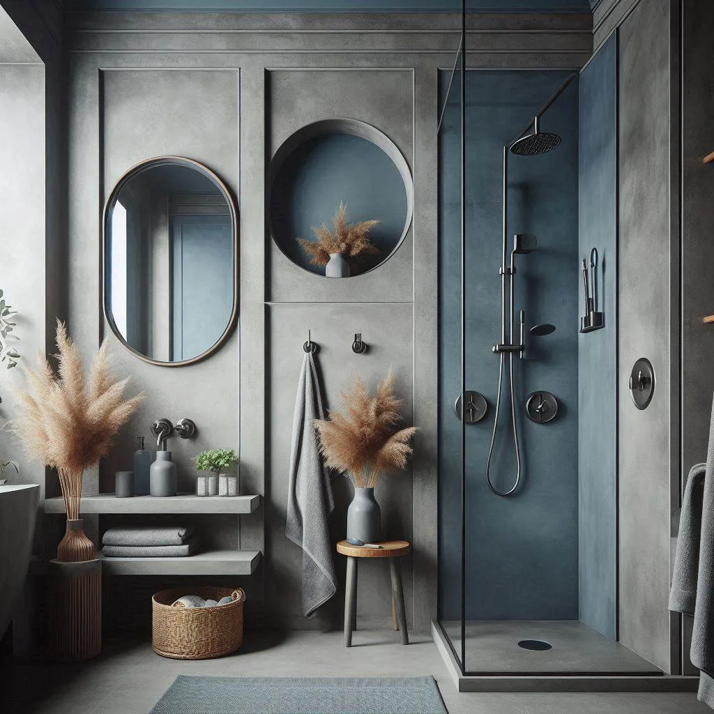 A shower niche can be both functional and visually striking. By tiling the niche with blue tiles while keeping the shower walls in a soft grey, you create a stylish contrast that enhances the overall design of the space. The deep blue of the niche stands out against the neutral grey, making it a focal point while providing a practical storage solution for toiletries. This combination not only adds a pop of color but also elevates the entire shower area, making it a standout feature in a bathroom with a grey and blue theme. This thoughtful design element ensures that even the smallest details contribute to the room’s aesthetic impact.