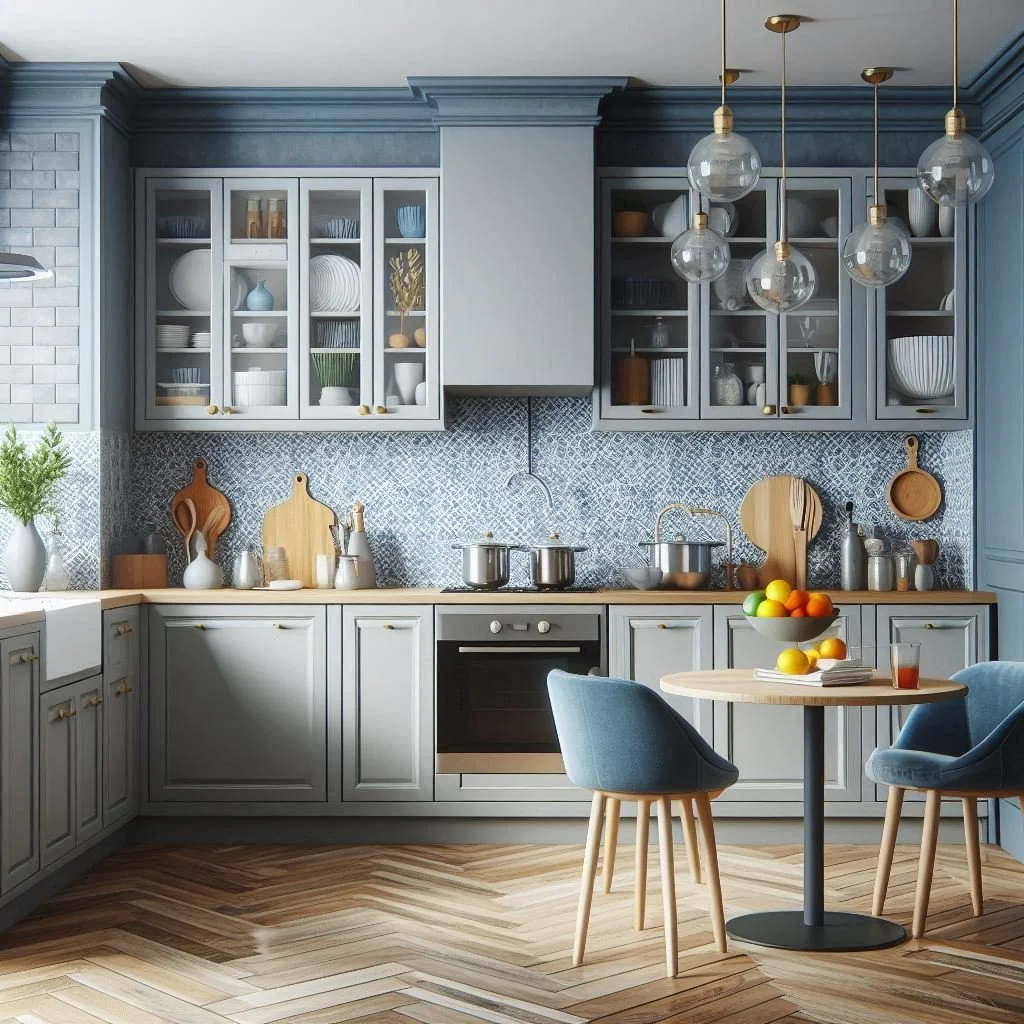 Grey and blue can work with a variety of kitchen styles, from sleek, modern designs to cozy farmhouse kitchens. It depends on how you incorporate the colors through materials, textures, and accents.