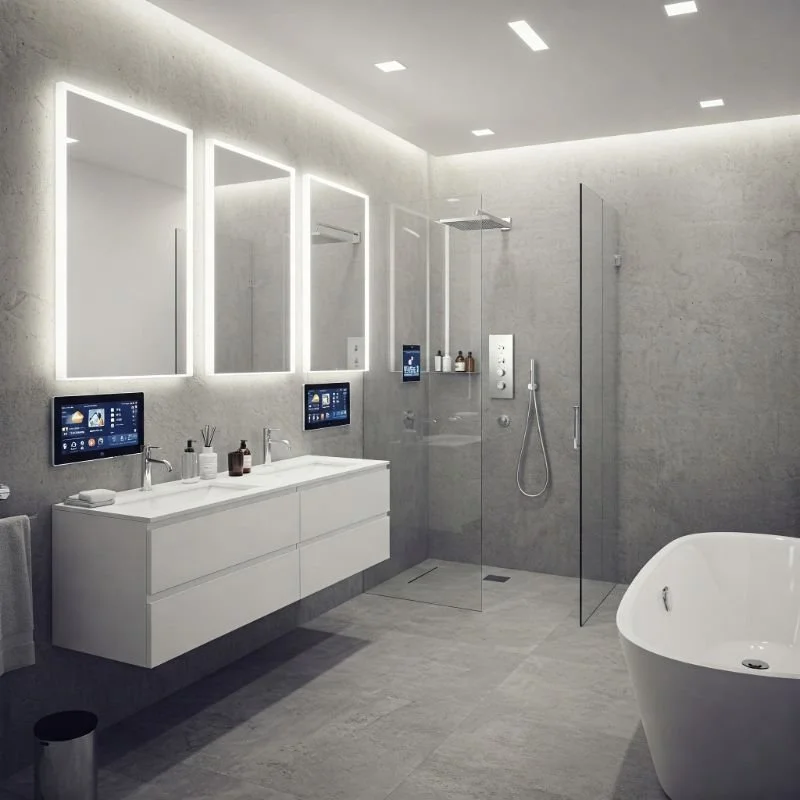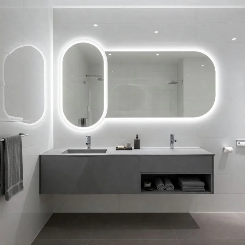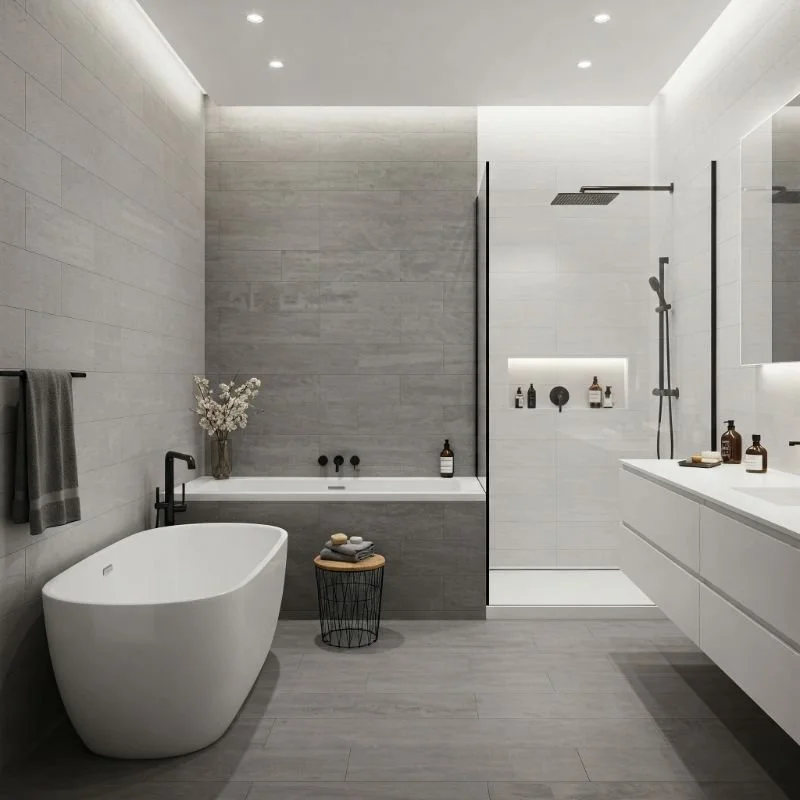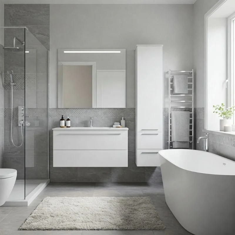 Q4: What are some effective lighting ideas for a modern grey and white bathroom?