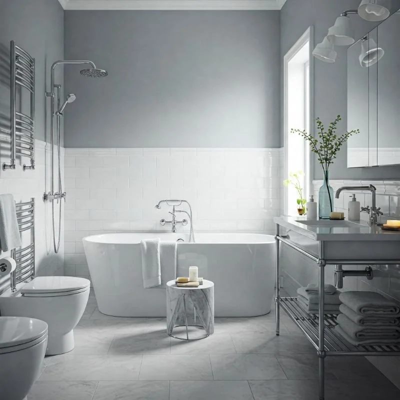 Q1: What makes a grey and white bathroom design so popular for modern homes?