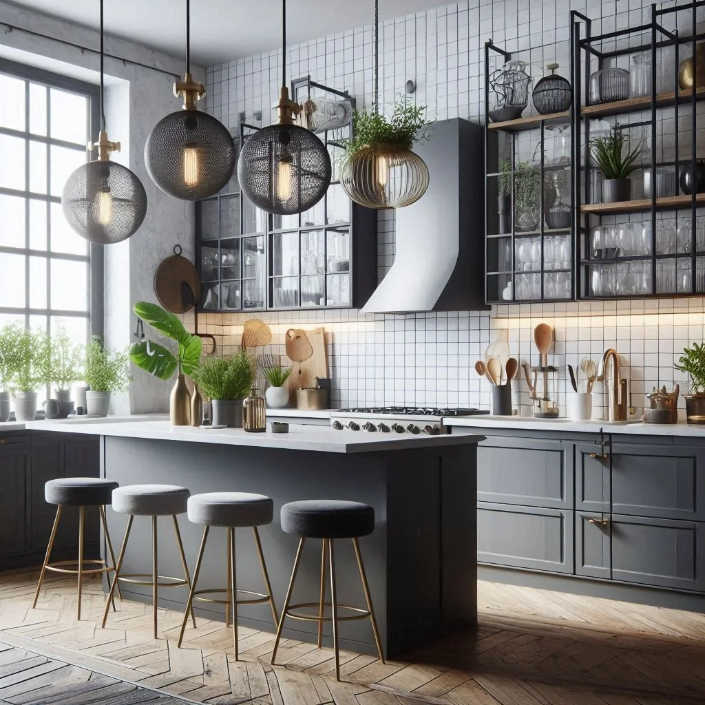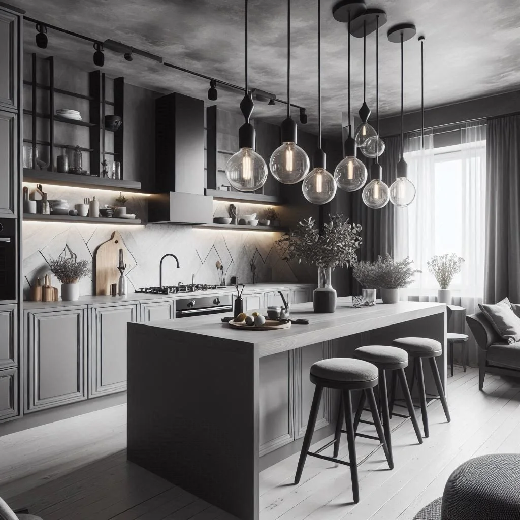 Lighting plays a crucial role in setting the ambiance of your kitchen, and choosing the right fixtures can enhance your grey, black, and white palette beautifully. Opt for unique light fixtures such as pendant lights, striking chandeliers, or contemporary sconces to add character while ensuring adequate illumination. These elements not only serve a functional purpose but also contribute to the overall aesthetic of the space. Consider selecting fixtures in matte black for a sleek, modern appearance, or polished chrome for a touch of shine that complements the other materials in your kitchen. Thoughtfully placed lighting can create a warm, inviting atmosphere while highlighting key design features throughout the room.