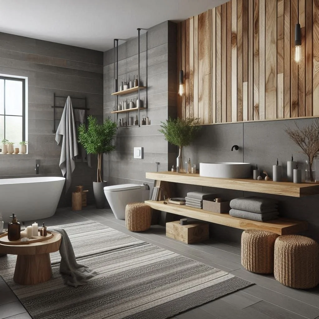 Add warmth by incorporating natural wood elements, warm lighting, and soft textiles like plush towels and textured rugs.