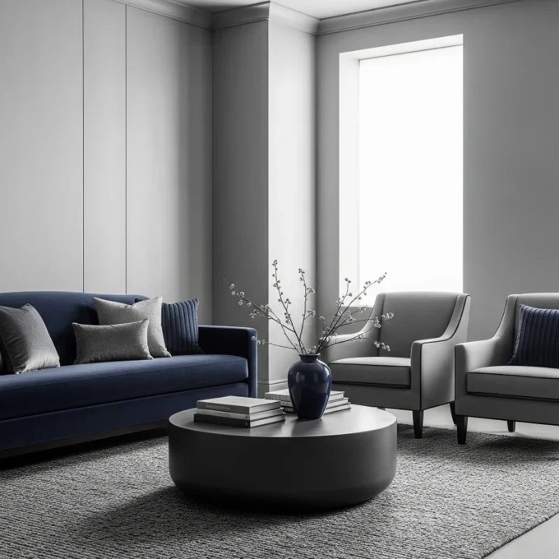 Create timeless elegance by pairing grey with rich navy blue! This sophisticated duo works like a well-tailored suit: always appropriate, never boring. Use grey as your dominant neutral through walls or large furniture, then add navy through accent pieces, curtains, or rugs. The contrast provides interest without jarring. Mix different shades: light grey with dark navy, or charcoal with lighter blues. Brass or gold accents warm up these cool tones perfectly. This combination suits traditional and contemporary styles equally well. Add crisp white elements to keep things fresh. Pattern mixing becomes easy when working within this palette. Your room gains that "established for generations" feel while staying current. The grey and navy partnership proves some classics never go out of style!