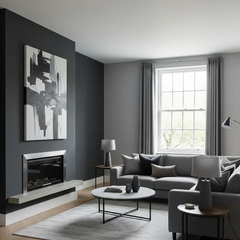 Make a bold statement with a charcoal grey accent wall that anchors your room with drama! This deep shade creates instant focal points without overwhelming like black might. Choose the wall behind your bed, sofa, or dining table for maximum impact. Charcoal's richness makes artwork pop and furniture stand out. Balance with lighter greys or whites on remaining walls to prevent cave-like feelings. The beauty of charcoal lies in its versatility: it's formal enough for dining rooms yet cozy enough for bedrooms. Add texture through paint techniques or wallpaper for extra interest. Good lighting is essential; wash the wall with light to reveal subtle undertones. This approach adds architectural interest to bland boxes. Your accent wall becomes the room's anchor, grounding everything else beautifully!