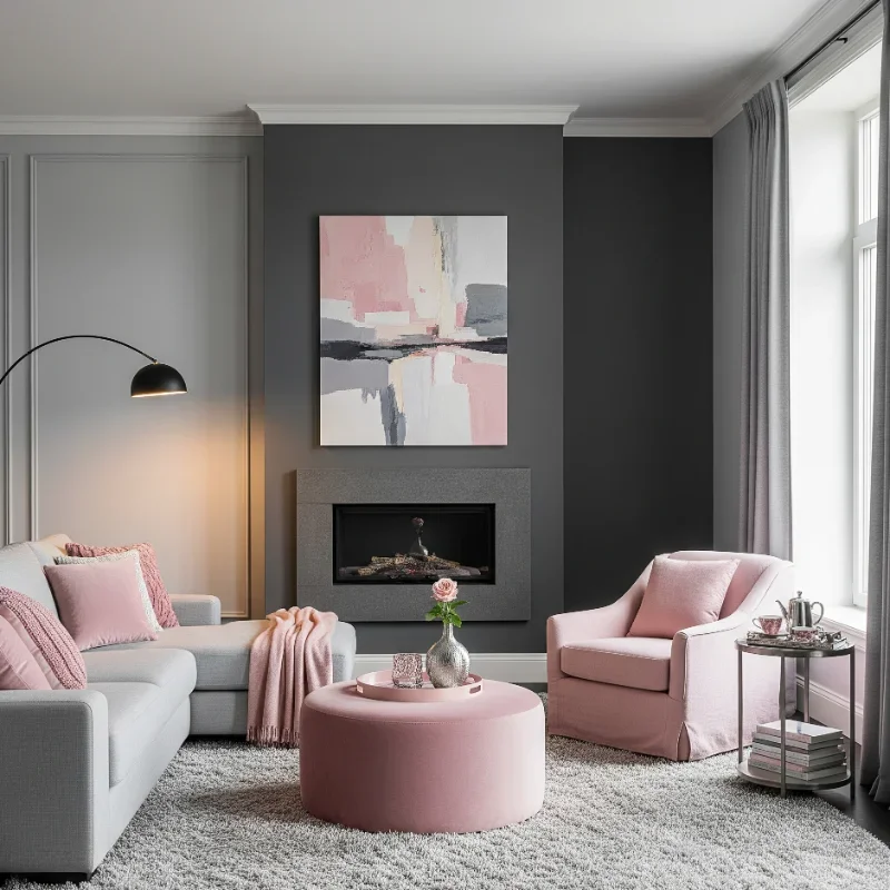 Soften grey's coolness with the unexpected warmth of blush pink! This Instagram-worthy combination brings romance without the saccharine sweetness. Paint walls in soft dove grey, then layer in pink through textiles: throw pillows, curtains, or an area rug. The contrast between cool grey and warm pink creates visual interest that feels fresh and modern. Choose muted pinks over bright ones for sophistication. Add metallic accents in rose gold or copper to bridge the two colors beautifully. This palette works brilliantly in bedrooms, nurseries, or living rooms where you want both elegance and warmth. Include plenty of white to keep the combination light and airy. Natural wood elements complement both colors perfectly. Your room achieves that elusive balance of strength and softness that appeals to all genders!