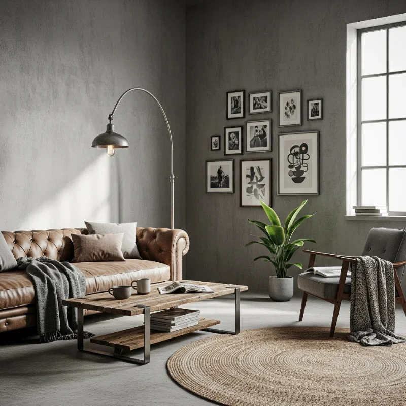 Embrace urban chic with grey concrete finishes that bring industrial edge indoors! Whether real concrete or convincing alternatives, this texture adds raw sophistication. Polished concrete floors in grey create seamless, modern foundations. Concrete-look walls through special paints or wallpapers add texture without construction. Pair with warm elements to prevent coldness: wood furniture, soft textiles, warm lighting. Metal fixtures in black or brass complement the industrial vibe. This aesthetic works particularly well in lofts or modern homes but can add edge anywhere. Include plants to soften the hardness. Mix smooth and rough concrete textures for variety. Your room gains that coveted warehouse-to-residence transformation that defines urban living!