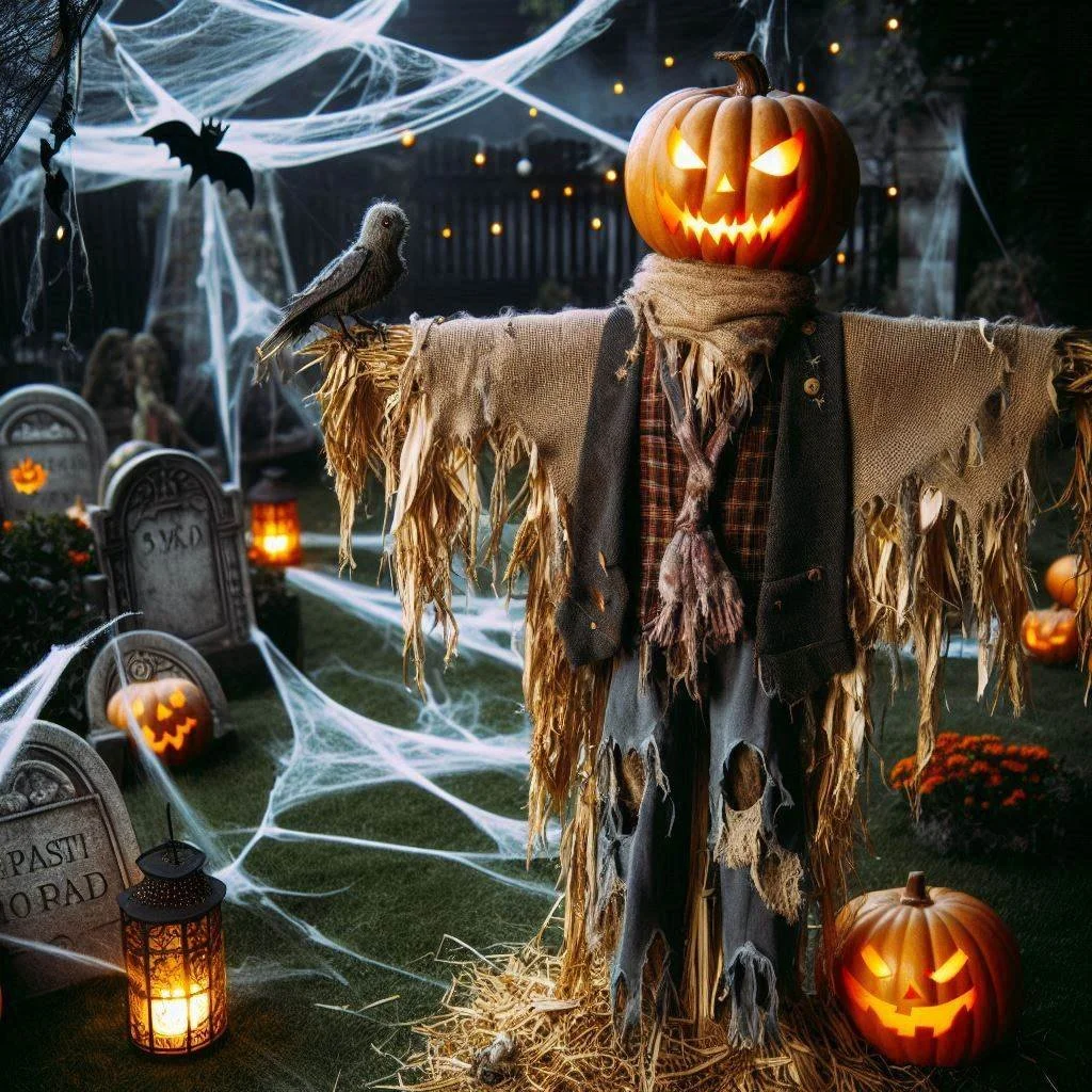Put a sinister twist on the classic scarecrow by crafting one that looks straight out of a nightmare. Start with old, tattered clothes—think flannel shirts, overalls, or a trench coat—and stuff them with straw or fabric to give the scarecrow an eerie shape. For the head, use a creepy mask or carved pumpkin with a sinister expression, and add glowing LED eyes to make it look like it’s watching every move. Secure it to a post, but give it a slouched or crooked posture for a more unsettling vibe. Scatter some hay or props like crows and bones around its base for added effect. Place it near your entrance or in the garden for a chilling surprise that will leave visitors feeling spooked.