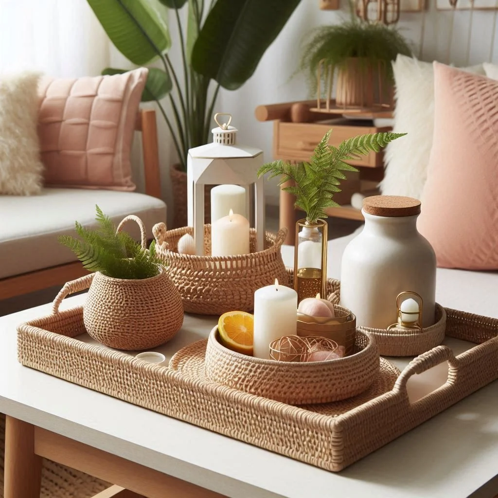Trays and baskets offer a stylish and practical way to keep your home organized while adding charm to your decor. Use trays on coffee tables or countertops to group items like candles, books, or vases, creating a neat and intentional display. In living rooms or bedrooms, baskets are perfect for storing blankets, magazines, or toys, helping you maintain a clutter-free space. Opt for woven, wire, or fabric baskets that complement your design style, whether rustic, modern, or minimalist. These versatile organizers not only keep essentials within reach but also add texture and warmth to your space. Incorporating trays and baskets is an easy way to combine function with style, bringing order and visual appeal to any room.