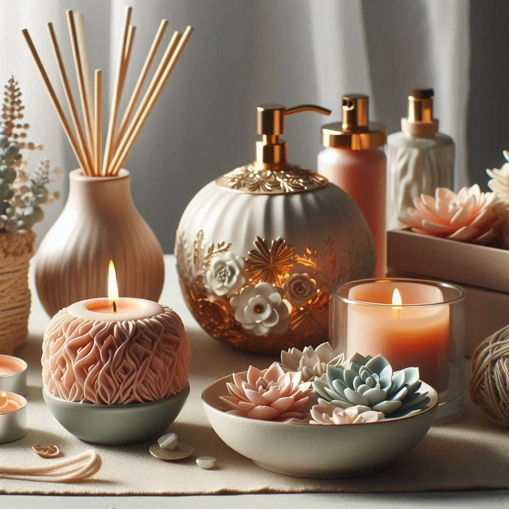 Engage your senses by incorporating scented candles and diffusers into your home, adding both fragrance and ambiance. Choose scents that complement the mood of each space—lavender for relaxation in the bedroom, energizing citrus for the kitchen or office, and warm vanilla for a cozy, comforting vibe in the living room. Scented candles not only fill the air with pleasant aromas but also create a soft, flickering glow that enhances the atmosphere. Diffusers offer a flame-free alternative, continuously releasing fragrance throughout the day. Whether displayed on coffee tables, shelves, or bathroom counters, these aromatic accents provide a finishing touch to your decor, making your home feel more welcoming, serene, and thoughtfully curated.