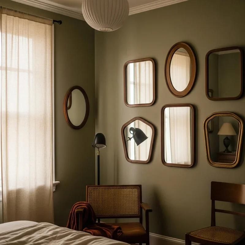 Mirrors aren't just functional; in indie rooms, they're art pieces that reflect light, space, and personality! Collect ornate vintage frames from different eras, creating an eclectic gallery that feels curated yet spontaneous. Hang them at varying heights and angles, some reflecting windows, others catching fairy lights for magical glimmering effects. Small hand mirrors grouped together create stunning focal points, while one oversized statement mirror anchors the entire room. Don't worry about perfect glass; slightly tarnished or foxed mirrors add authentic vintage charm that new ones can't replicate. Paint frames in unexpected colors or leave them in original patinas for varied textures. The mix of shapes (round, oval, rectangular, sunburst) prevents monotony while maintaining cohesion through the reflective element. Beyond aesthetics, mirrors make small rooms feel larger and dark spaces brighter, solving practical problems while adding incredible style.