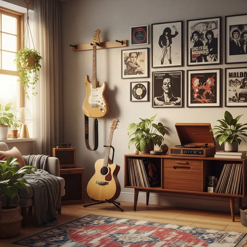 Whether you play or just appreciate their beauty, musical instruments as decor instantly add creative energy to indie rooms! Guitars mounted on walls become functional art, while vintage ukuleles grouped together create charming vignettes. That inherited piano doesn't just take up space; it's a surface for plants, books, and rotating art displays. Hang tambourines and small percussion instruments on hooks for an interactive wall that guests can actually play. Old sheet music framed or used as wallpaper adds musical themes without requiring actual instruments. Display instruments you're learning alongside ones you've mastered, showing your creative journey. The presence of instruments suggests possibility and creativity, even when silent. They remind you that your room isn't just for sleeping but for creating, practicing, and expressing yourself through art. This display approach keeps instruments accessible for spontaneous jam sessions while contributing to your room's overall aesthetic story.