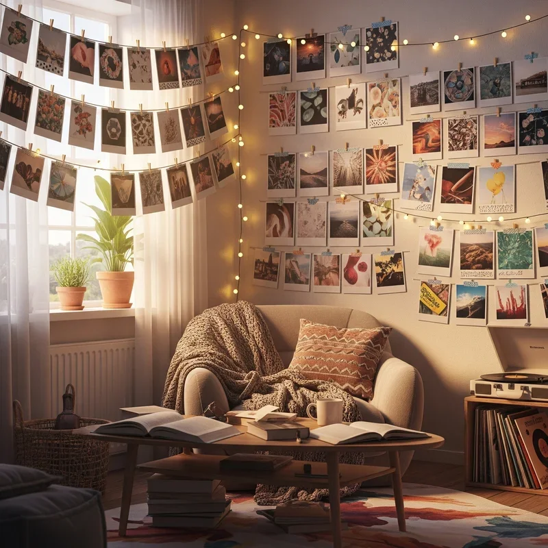Forget perfect Instagram grids; Polaroid galleries celebrate the imperfect beauty of captured moments! These instant photos with their distinctive white borders create nostalgic displays that feel both vintage and timeless. String them on twine with tiny clothespins for that classic indie look, or arrange them in organic clusters that grow over time. Mix actual Polaroids with printed photos edited to look instant for budget-friendly expansion. Create themes like "midnight adventures," "coffee shop sessions," or "friends being weird" to give your gallery personality. The slightly faded colors and soft focus of instant photography add dreamy quality that perfectly matches indie aesthetics. Leave space for new additions; your gallery should evolve with your experiences. Some photos might be slightly blurry or badly framed, but that's the point. Each image represents a moment worth capturing, creating a visual diary that decorates your walls with memories.