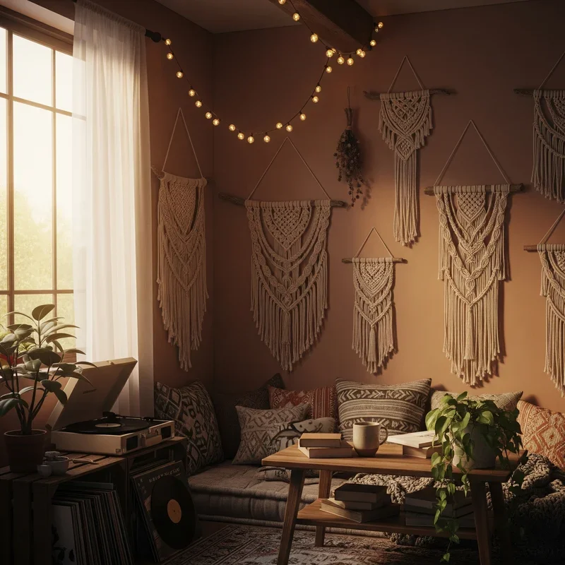 Channel your inner 70s artist with macrame wall hangings that add texture, warmth, and handmade charm to your indie sanctuary! You don't need to be a crafting genius; basic knots repeated in patterns create stunning pieces that look way more complicated than they actually are. Natural cotton rope in cream or beige keeps things neutral, while dyed cords add pops of color that complement your room's palette. Incorporate beads, feathers, or dried flowers into your designs for extra bohemian flair. Size matters here: one large statement piece can anchor a wall, while multiple smaller hangings create an artsy gallery effect. YouTube tutorials make learning accessible, turning a rainy afternoon into productive creativity. The meditative process of knotting becomes therapeutic, and the finished piece carries the energy of your own hands. Plus, handmade decor always sparks conversations about creativity and self-expression.