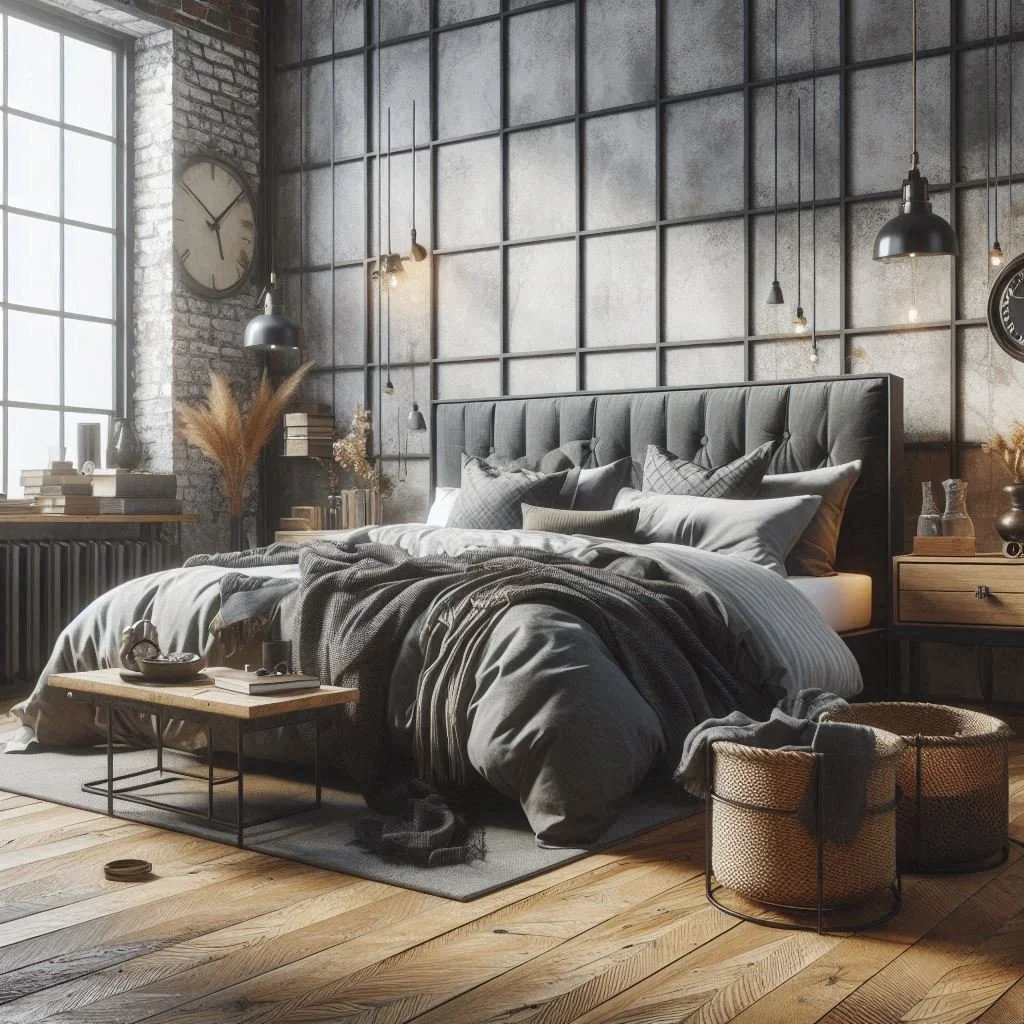 Complete your industrial bedroom with modern bedding sets featuring clean lines and understated patterns. Choose neutral tones such as grey, black, or white to harmonize with the industrial vibe of the room. These bedding sets contribute to the sleek and minimalist aesthetic while providing a cozy and inviting atmosphere for rest and relaxation. Opt for duvet covers, pillowcases, and sheets with understated designs to maintain the contemporary look of the space. By selecting bedding sets that align with the industrial style, you can achieve a cohesive and polished bedroom decor that exudes modern sophistication.