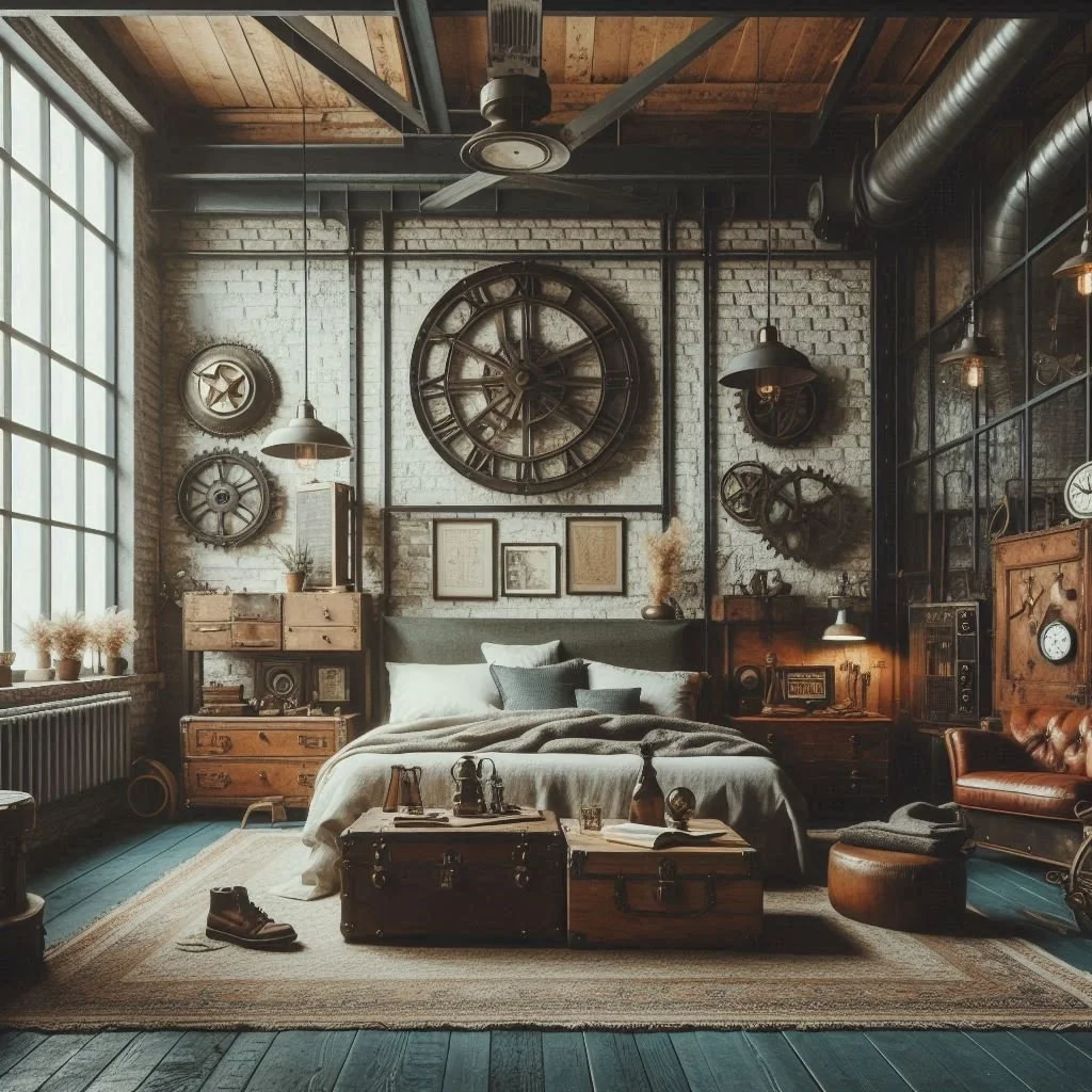 Incorporate steampunk inspired details such as gear-shaped wall decor, vintage brass accents, or industrial pipe curtain rods to add a touch of whimsy to your industrial bedroom. These unique elements bring a sense of creativity and eccentricity to the room, adding character and personality to your decor. Vintage brass accents and industrial pipe curtain rods lend a nostalgic charm, while gear-shaped wall decor adds an intriguing visual interest. The combination of steampunk and industrial aesthetics creates a playful yet sophisticated ambiance, allowing you to express your creative personality in your bedroom design.
