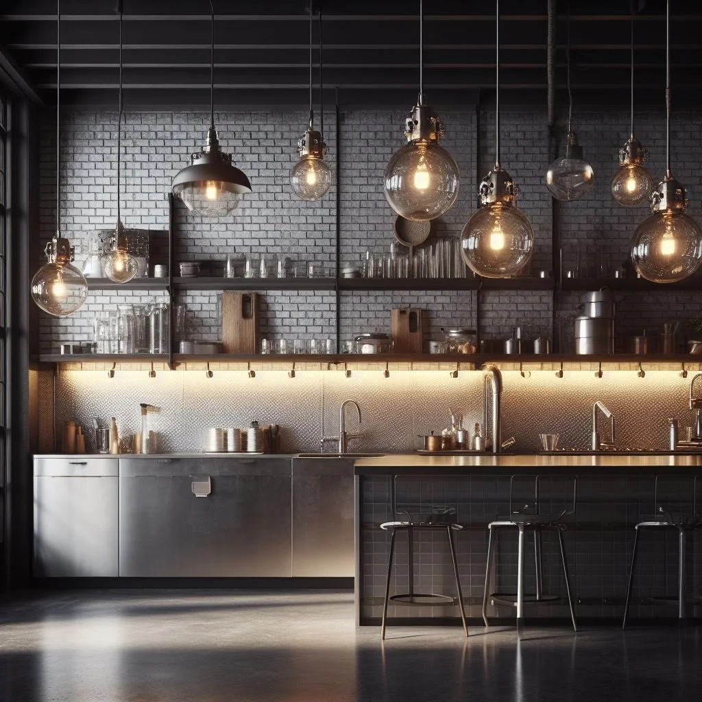 Illuminate your space with a touch of industrial flair by incorporating statement lighting fixtures. Opt for oversized pendant lights, cage lamps, or repurposed factory lights to establish a visually striking focal point in your interior. These bold choices not only provide ample illumination but also serve as captivating design elements. The robust and utilitarian aesthetics of industrial-inspired lighting create a unique juxtaposition, adding an edgy and dynamic dimension to your decor. This lighting strategy goes beyond functionality, transforming your space into a visually compelling environment that celebrates the raw beauty of industrial design.