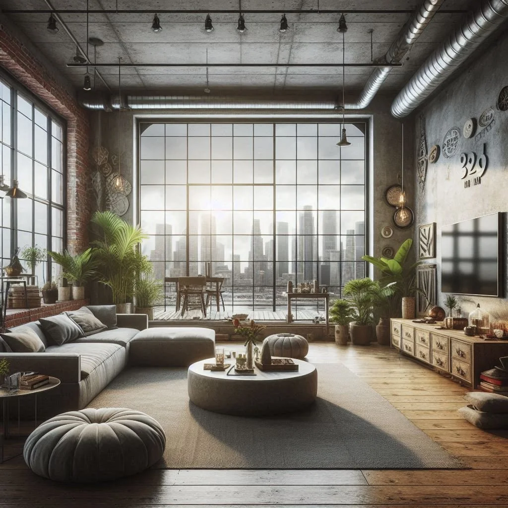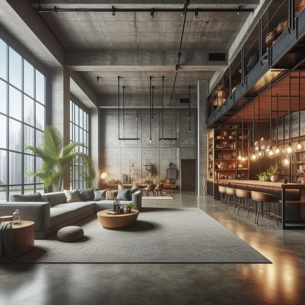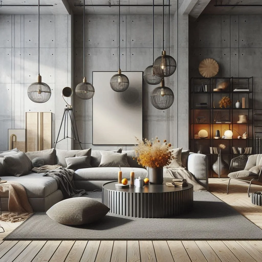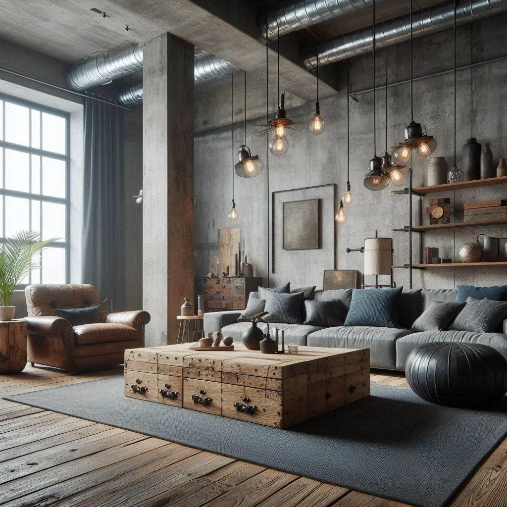 Concrete flooring is a quintessential element of industrial design, lending an urban and rugged charm to your living room. Whether you choose polished, stained, or raw concrete, this flooring option brings durability and a clean, minimalistic aesthetic to the space. Its smooth, unadorned surface aligns perfectly with the industrial theme, providing a stark, modern contrast to softer elements. To balance the starkness and add warmth, incorporate textured rugs or cozy throws. These additions not only soften the look but also enhance comfort, making the space inviting while retaining its distinct industrial edge.