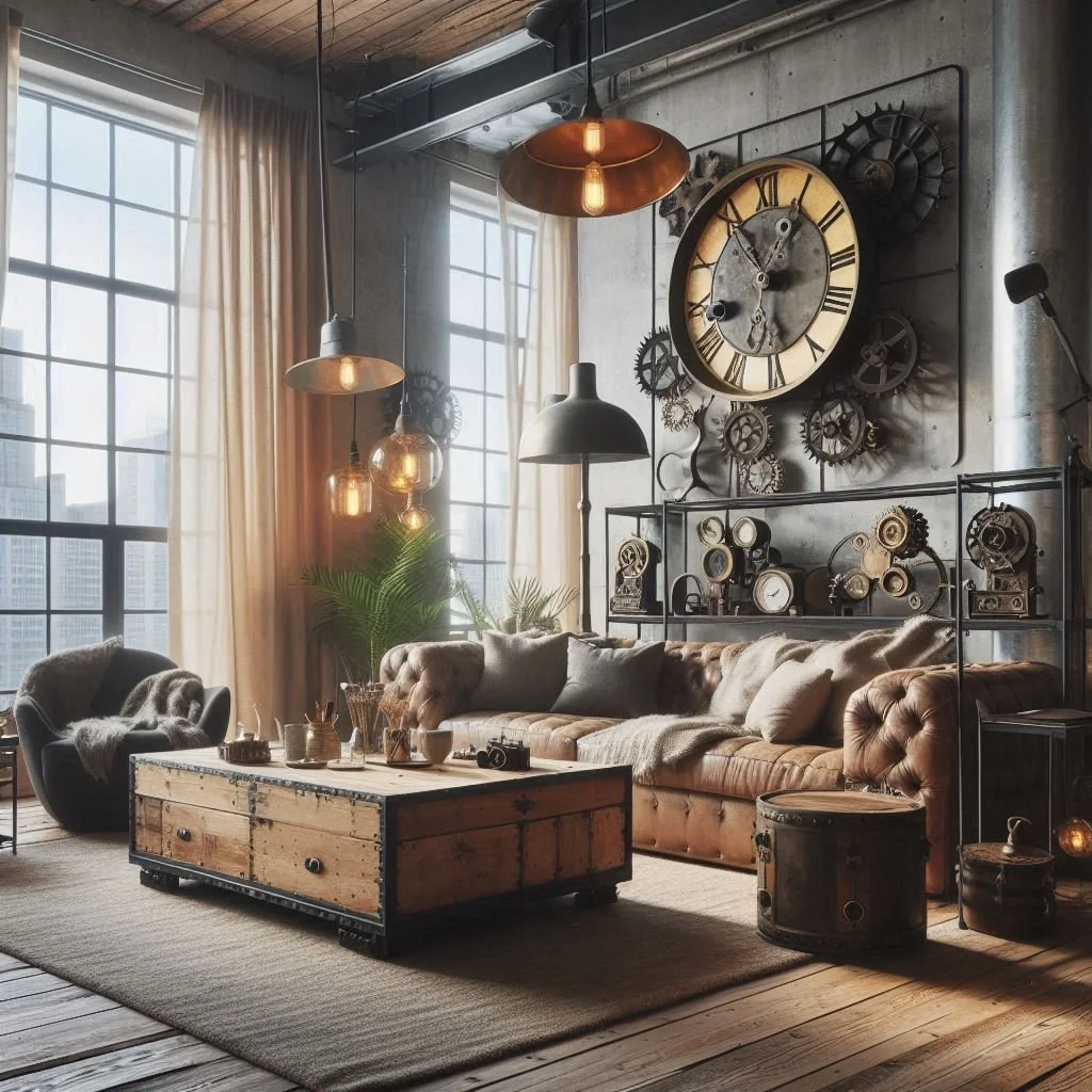 Incorporating raw wood accents adds warmth and character to industrial decor. By combining wooden elements with metal, you create a balanced contrast that enhances the space’s visual appeal. Consider adding wooden shelves, reclaimed wood coffee tables, or even a wooden accent wall to bring a touch of nature into the rugged industrial aesthetic. The natural texture of wood softens the harshness of industrial materials like metal and concrete, creating a cozy, inviting environment that blends both modern and rustic elements seamlessly. This fusion of materials not only adds depth to the design but also introduces a sense of warmth and comfort to the urban setting.